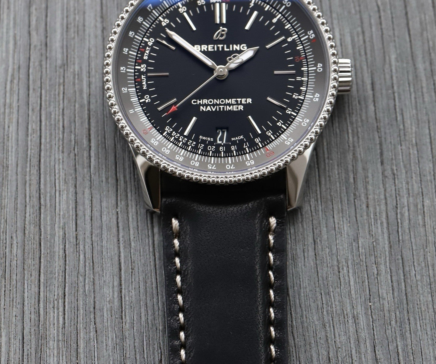 Powering it is the Breitling calibre 17 automatic, and it's mounted to a lovely new German made Fluco leather strap with Breitling tang buckle.