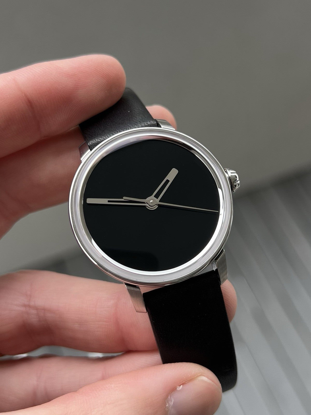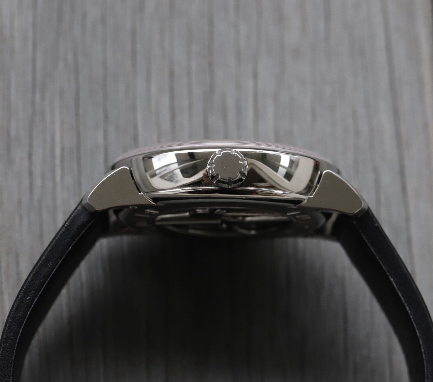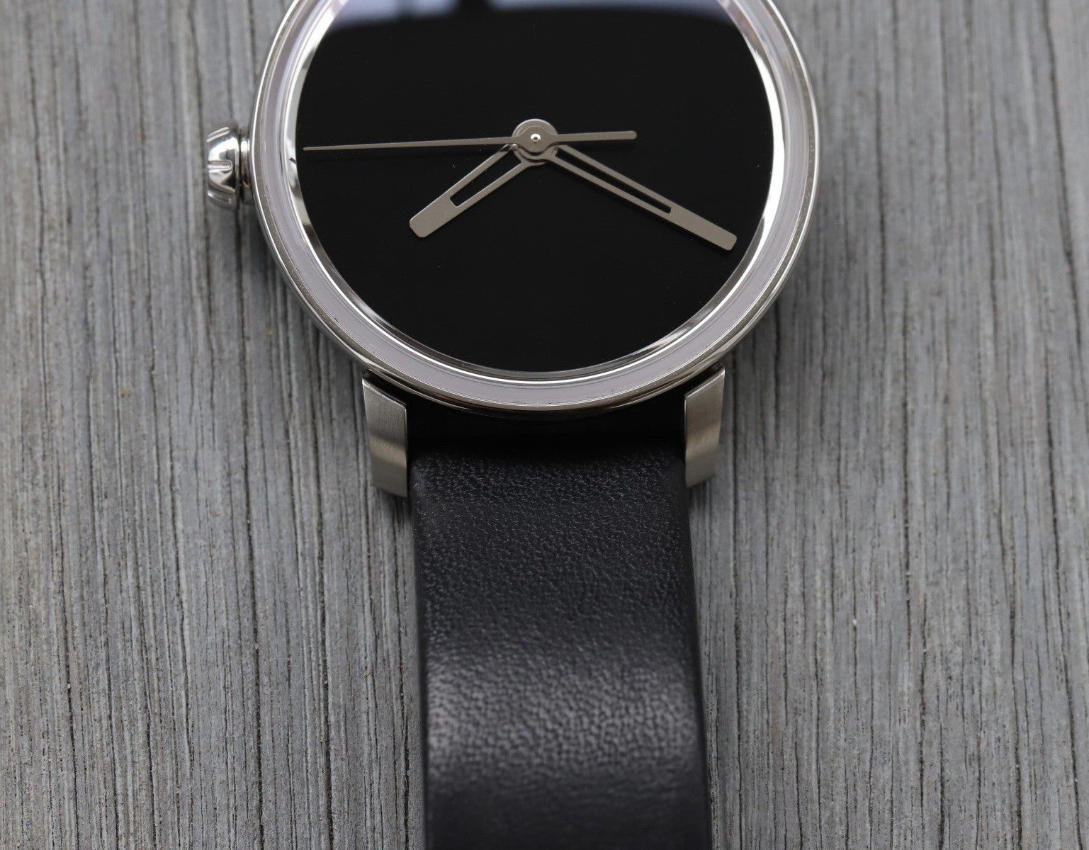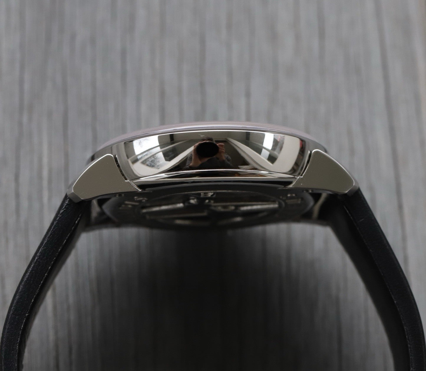 The case for the 1110 series is the same across all pieces, measuring in at 40mm in steel. While the case itself is perfectly proportioned and with a lovely finish, the star of the show is the dial which in this case is an inky black Onyx, with its partially skeletonized steel hands seemingly floating above it. It's spectacular in person.