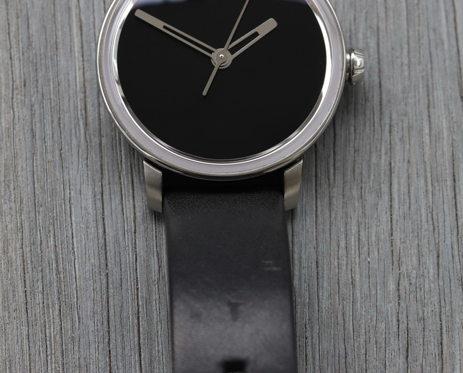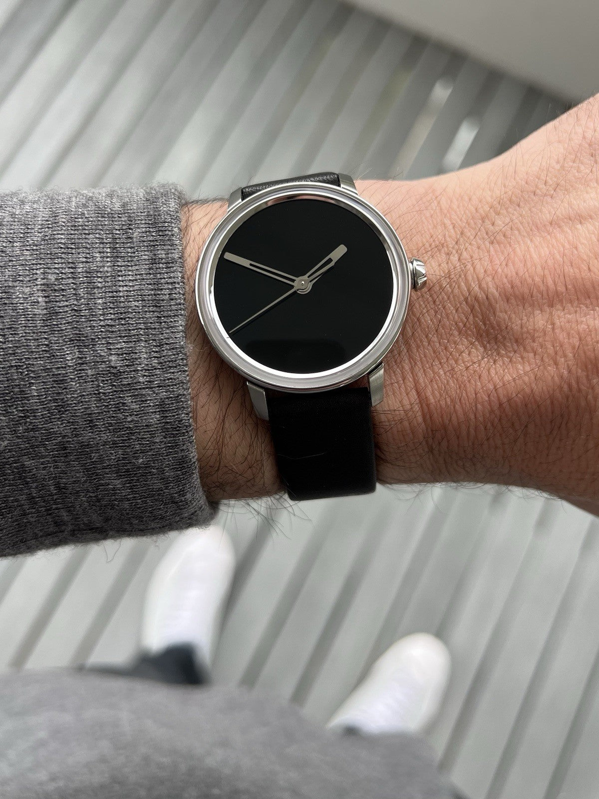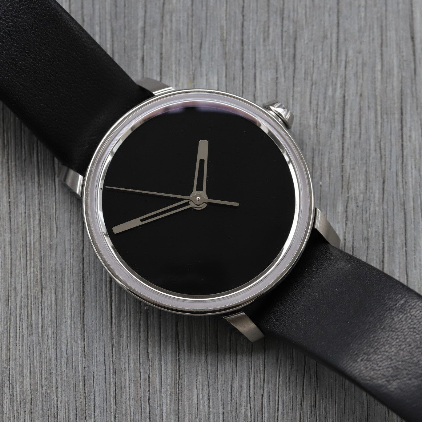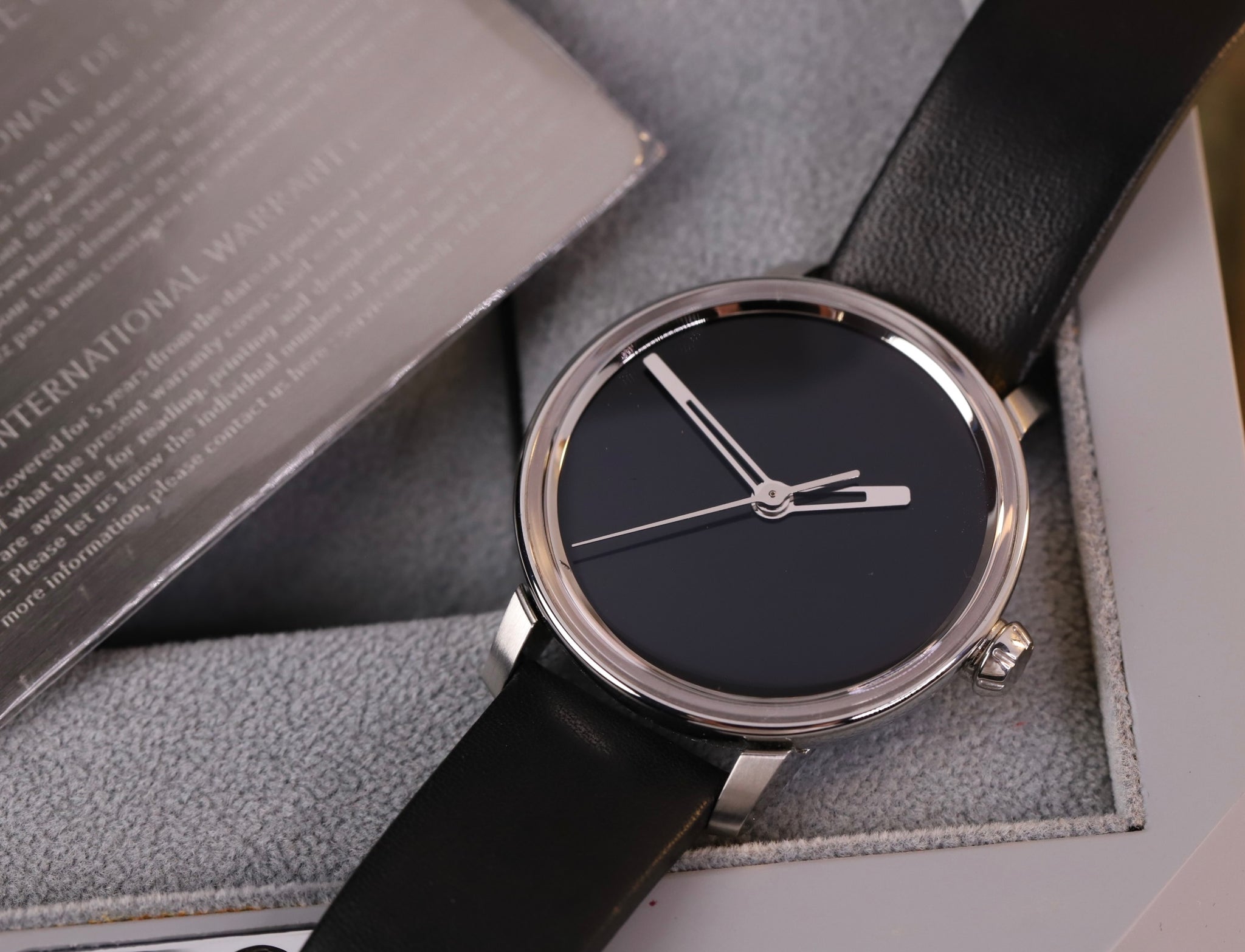 The case for the 1110 series is the same across all pieces, measuring in at 40mm in steel. While the case itself is perfectly proportioned and with a lovely finish, the star of the show is the dial which in this case is an inky black Onyx, with its partially skeletonized steel hands seemingly floating above it. It's spectacular in person.