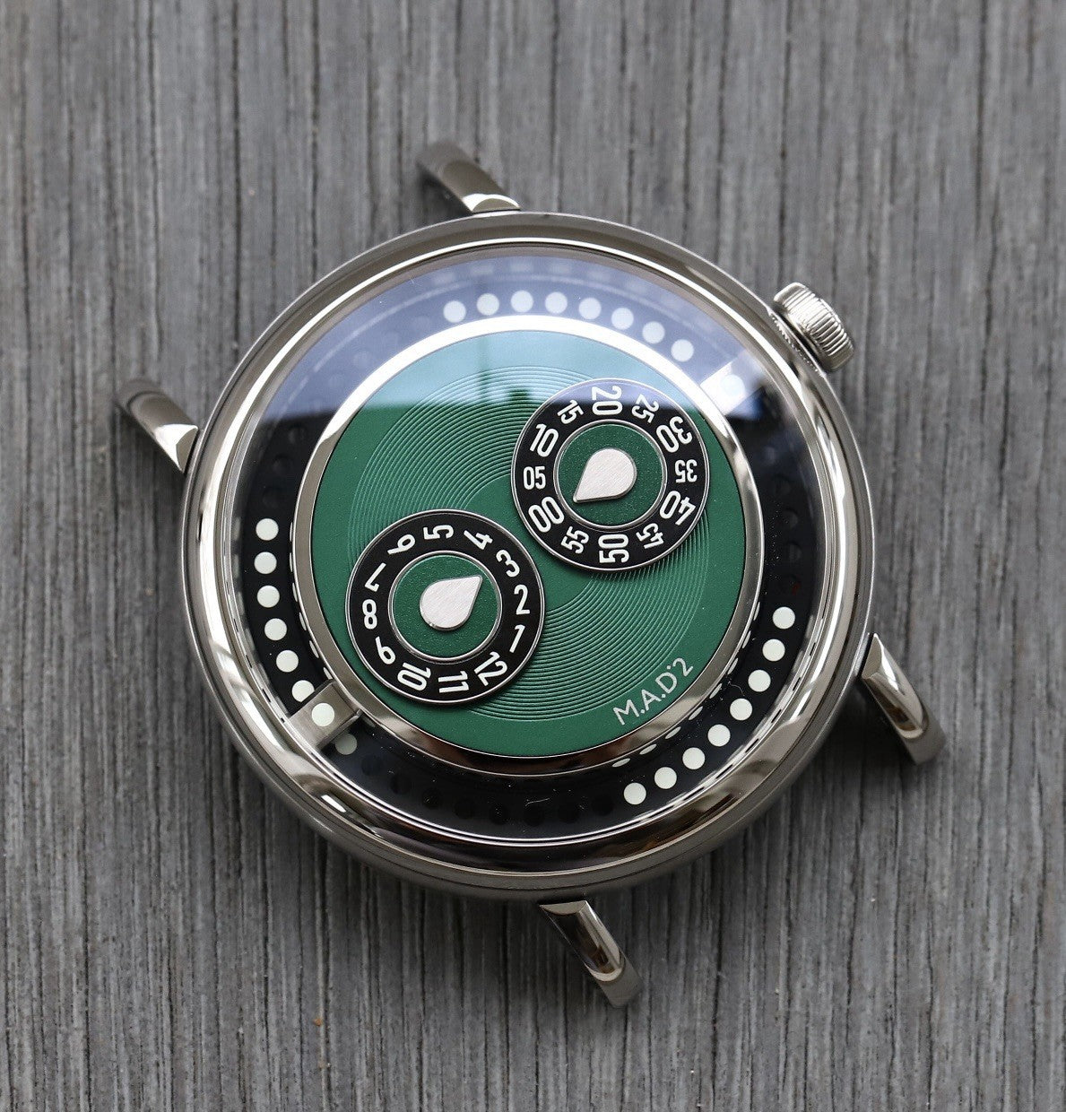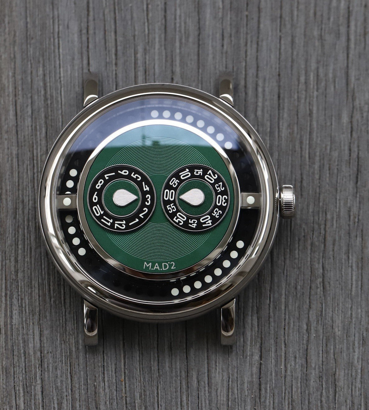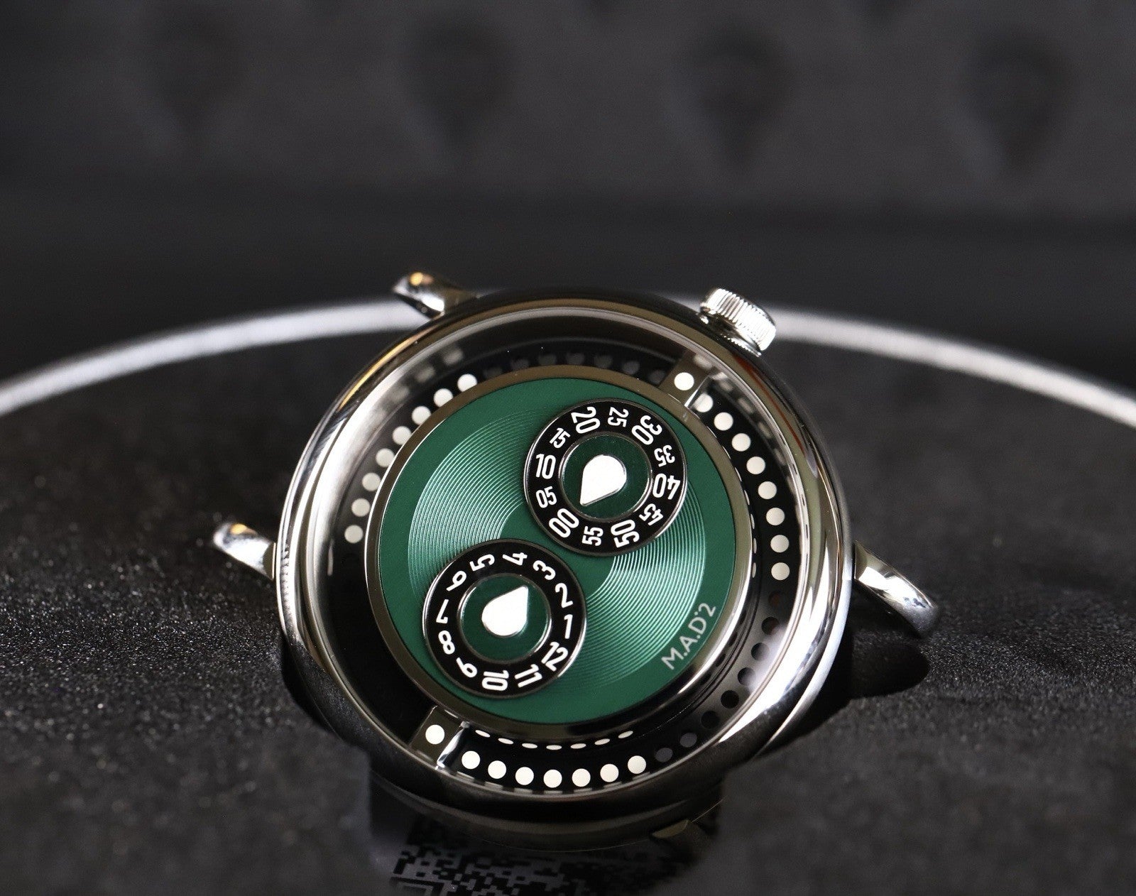 The M.A.D 2 comes from the mind of Eric Giroud, famed designer who has done a lot of work on MB&F's main lines. An ode to club culture the M.A.D.2 features raised central subdials for the hours and minutes, which are designed to look like turntables from a mixing console. This hides a jump-hour complication, indicated by the 'picks' at the centre of each subdial.