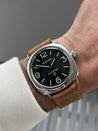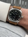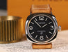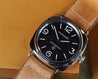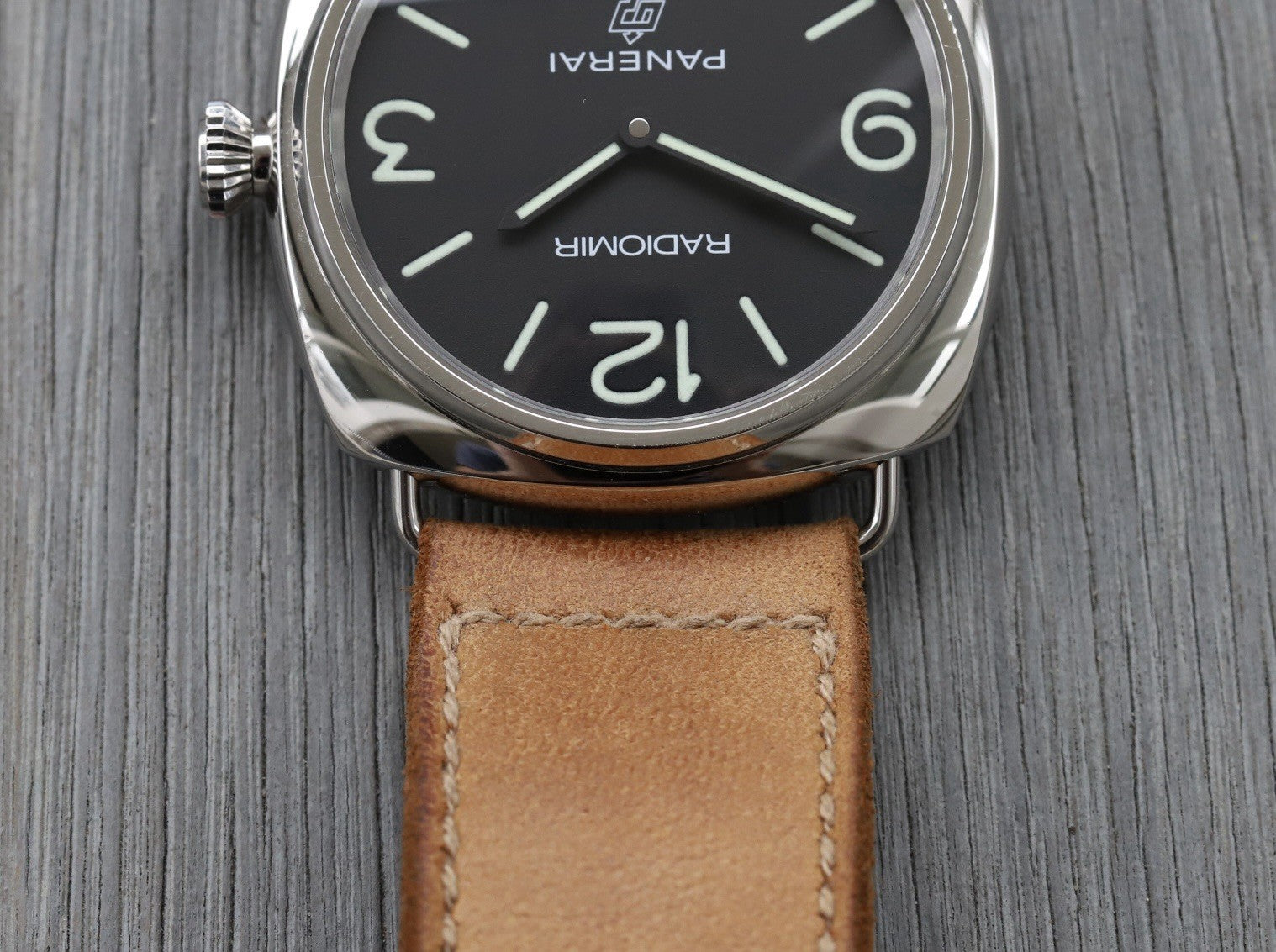 It retains the iconic 45mm Radiomir steel case which is water resistant to 100m, which houses the classic painted dial with ultra-legible and simple 3-6-9-12 base configuration, and topped with heavily lumed hands. The case itself is quite svelte for a 45mm watch, with a thickness of 12.7mm, and combined with the Radiomir wire lugs it is certainly not overbearing on the wrist and wear smaller than a Luminor in our opinion.
