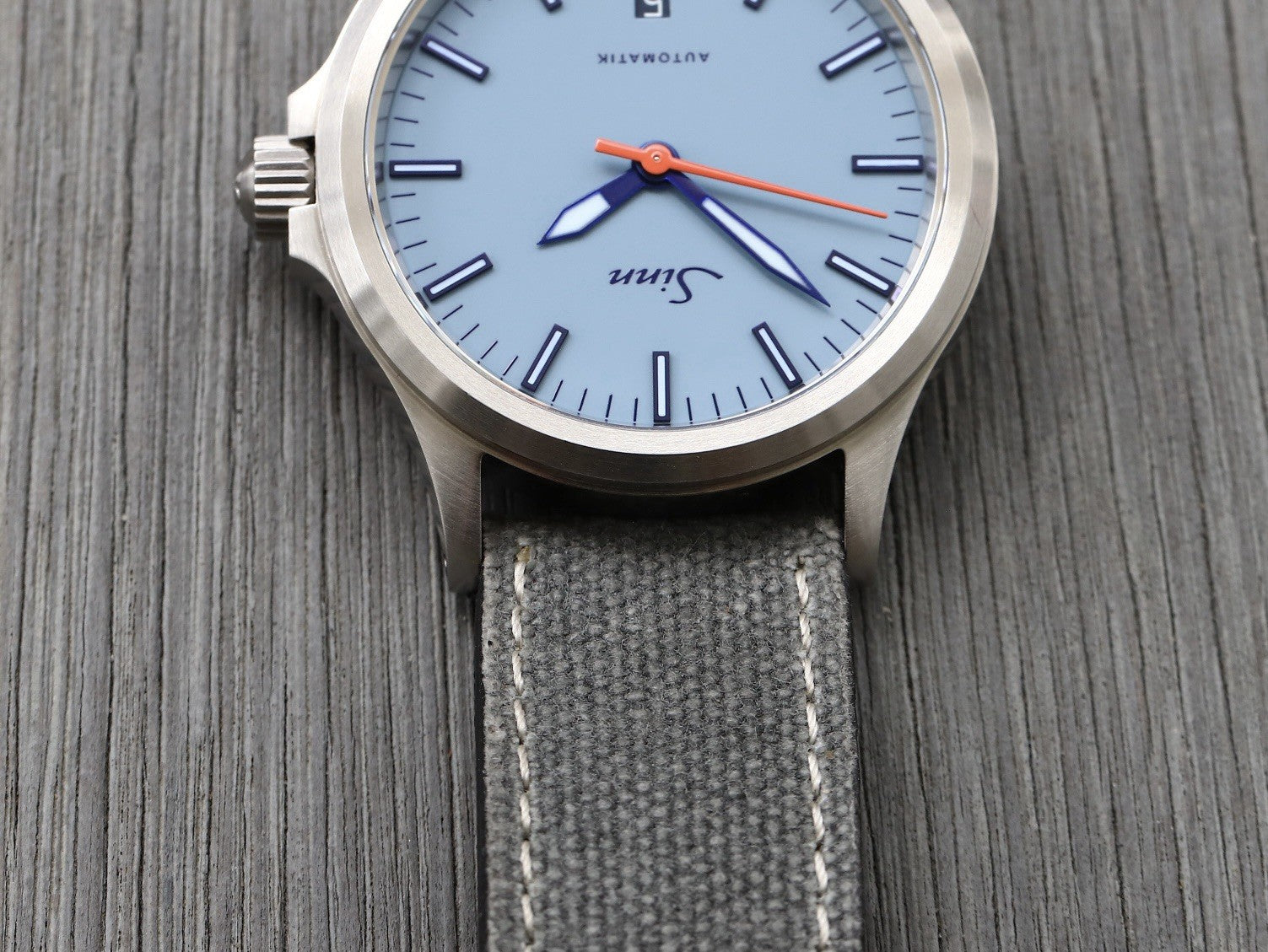 Bracelet: Grey Canvas with Steel Tang Buckle, Sinn Blue Calfskin