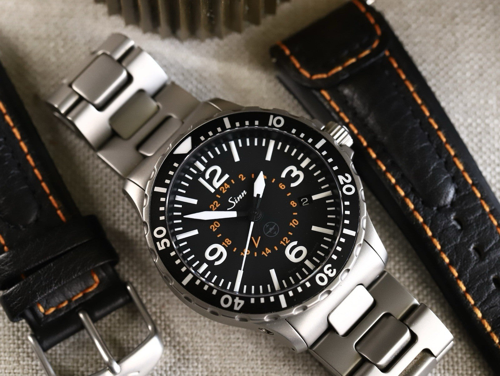 Strap: Sinn Tegimented steel, Sinn leather strap with tang buckle
