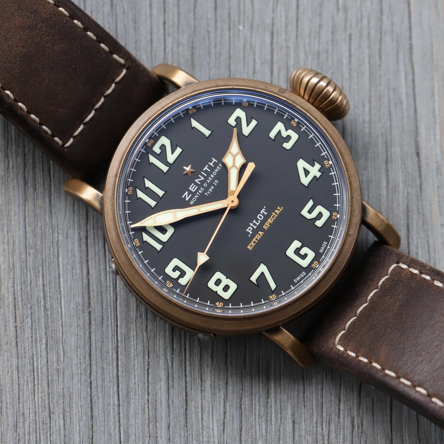 Based around the Type 20 released in the early 2010's, Zenith took that winning formula of historic pilot-style watch and fashioned it from bronze, adding a further layer of beauty, practicality and warmth to this already very cool take on the formula.
