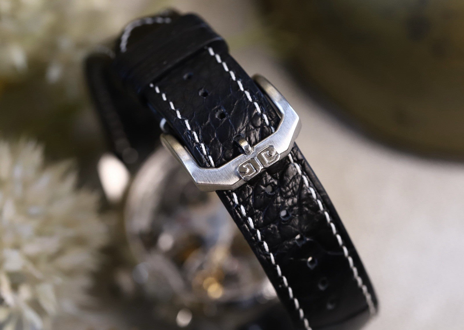 Strap: Artisan leather with GO Platinum buckle / GO 'gator strap