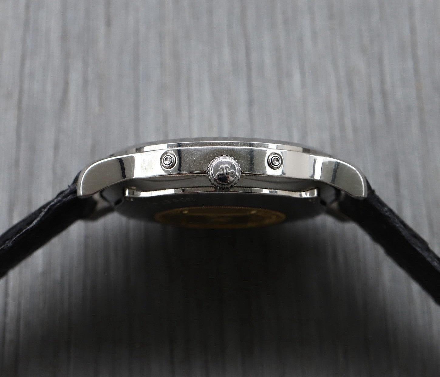Finishing it off is a beautiful factory JLC 'gator strap with JLC tang buckle in steel.