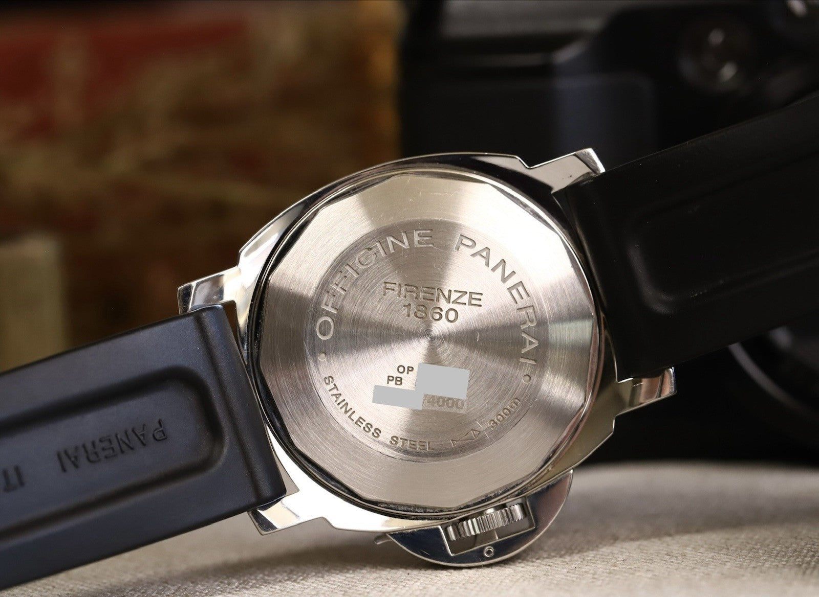 It features the iconic Bettarini 44mm Luminor case with crown locking mechanism with a sausage dial, but differentiated itself with a date window with inbuilt cyclops, and derived its power from an automatic movement rather than the more classic manual winds of the aforementioned references in the form of the OP III, based around the ETA 7750.