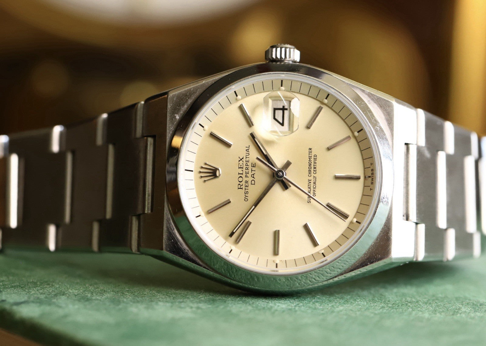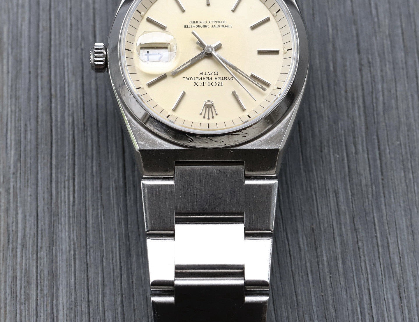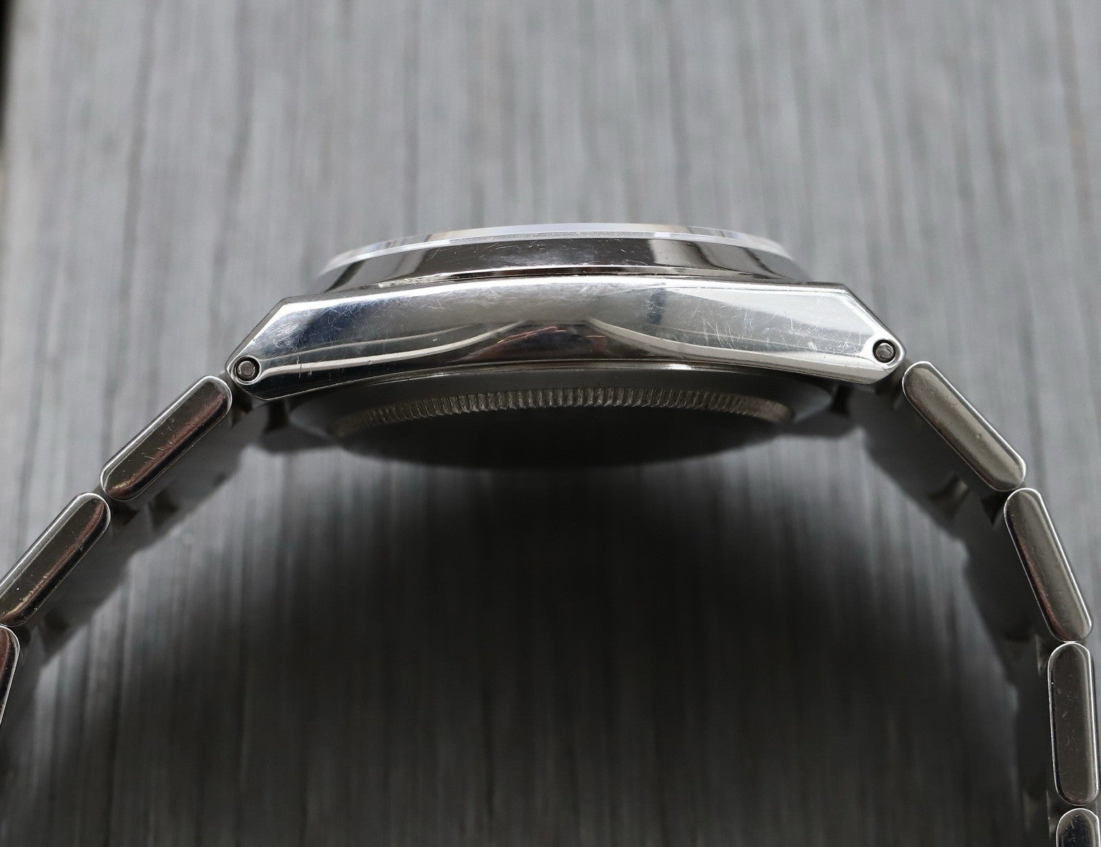 At first glance most people think it's an Oysterquartz, but look a little closer and you'll see this is the model that pre-dates the Oysterquartz and was clearly the inspiration behind the new Land-Dweller. The story goes that Rolex was still developing their in-house quartz movement after pivoting away from the Beta 21 movement, and the case and bracelet were ready before the movements were. So Rolex cased up the venerable 1570 automatic movement and put it into the new Oysterquartz case and voila, the 1530 was born. Produced only for a very short 3 year run, there is rumoured to have been only about 1500 units produced, making them one of the rarest references, and one of the most desirable in our opinion.