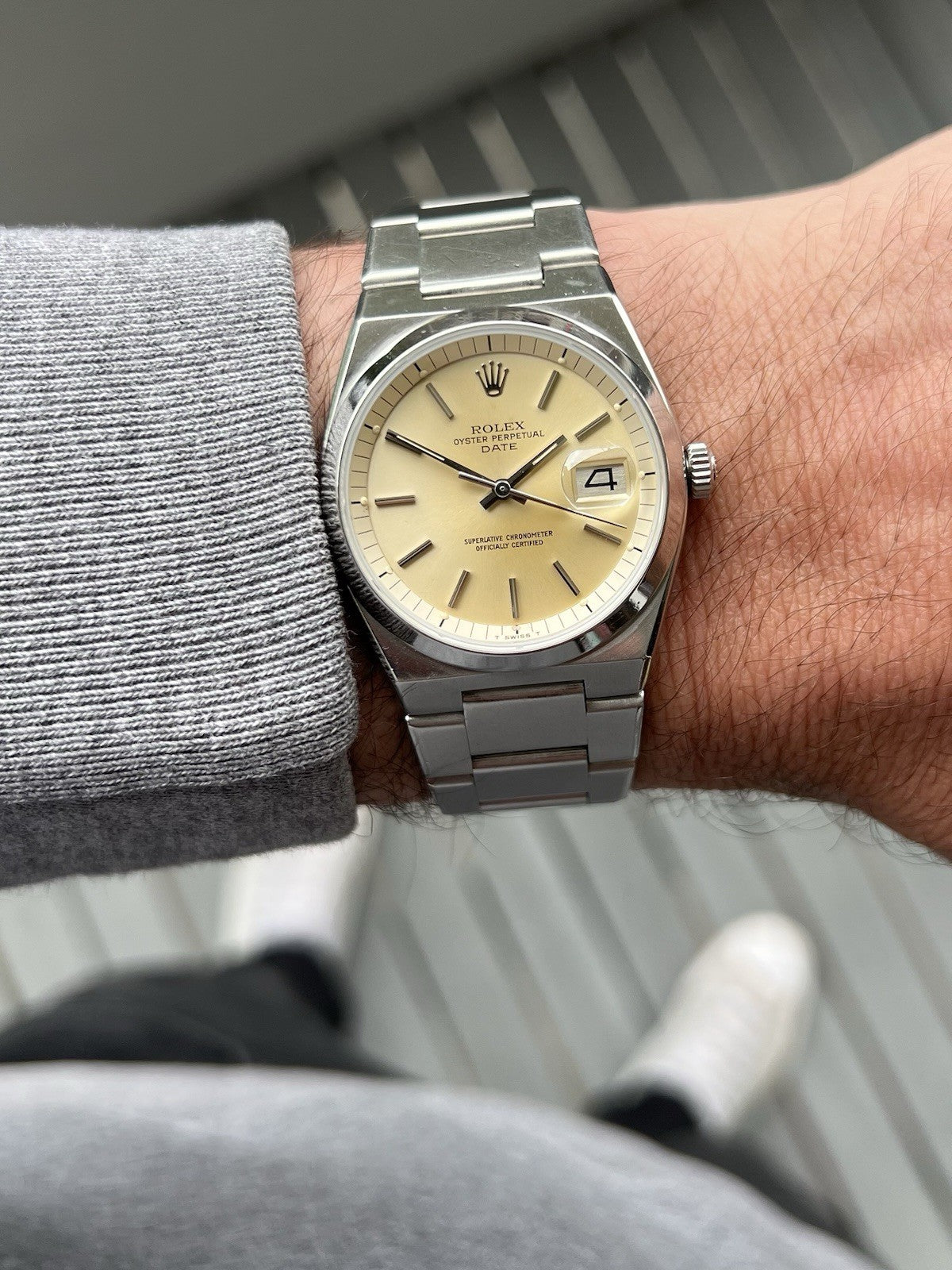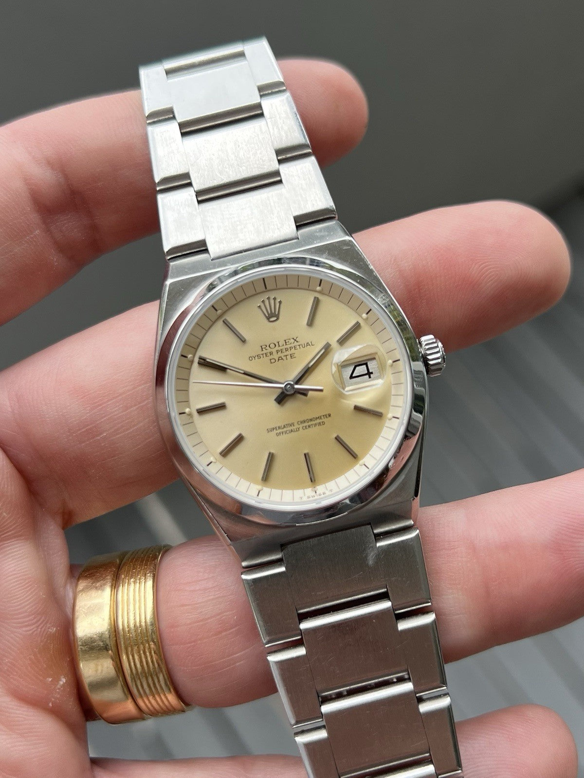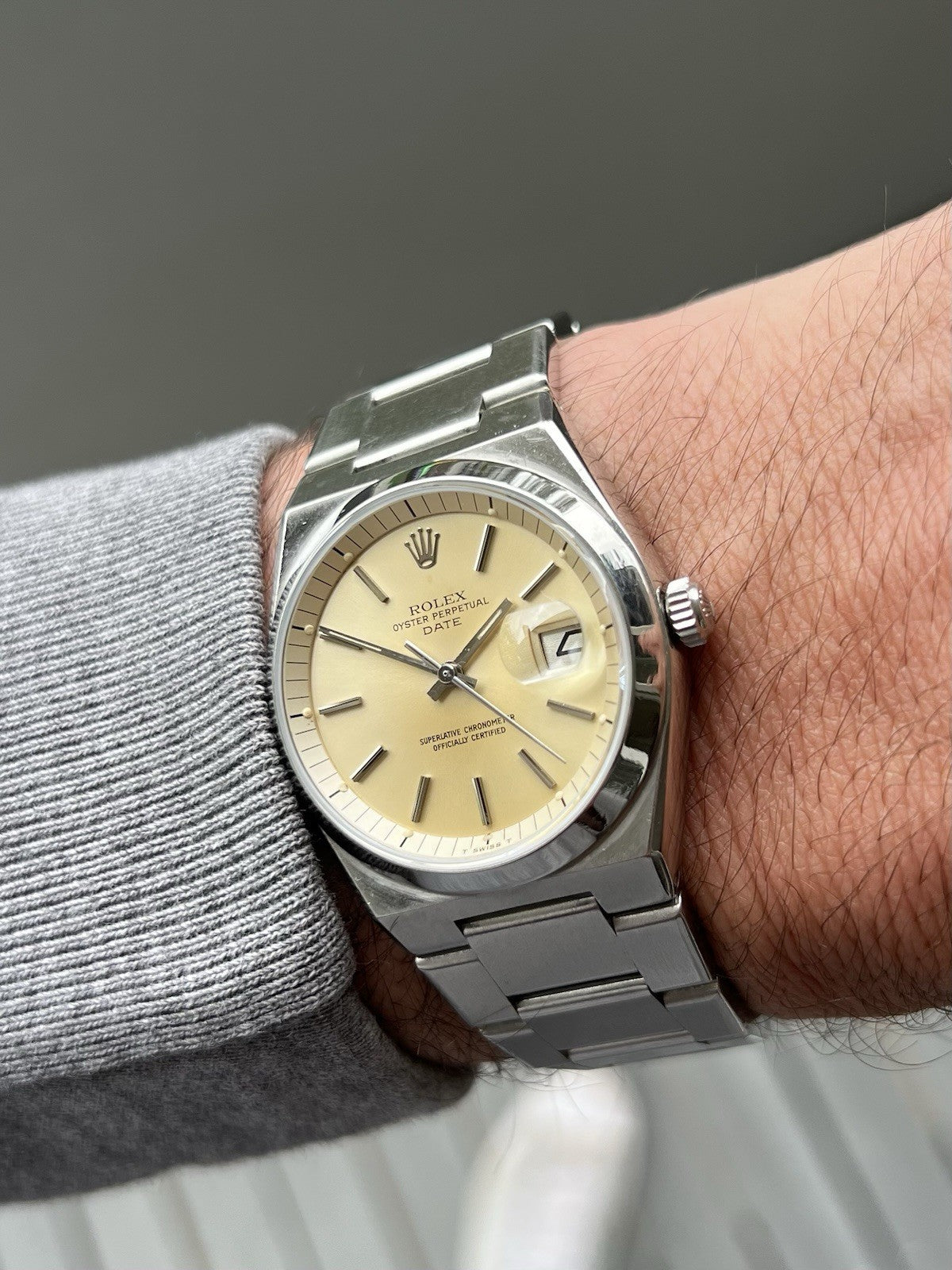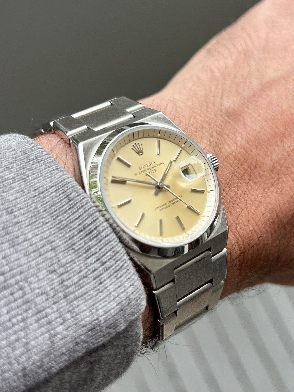 At first glance most people think it's an Oysterquartz, but look a little closer and you'll see this is the model that pre-dates the Oysterquartz and was clearly the inspiration behind the new Land-Dweller. The story goes that Rolex was still developing their in-house quartz movement after pivoting away from the Beta 21 movement, and the case and bracelet were ready before the movements were. So Rolex cased up the venerable 1570 automatic movement and put it into the new Oysterquartz case and voila, the 1530 was born. Produced only for a very short 3 year run, there is rumoured to have been only about 1500 units produced, making them one of the rarest references, and one of the most desirable in our opinion.