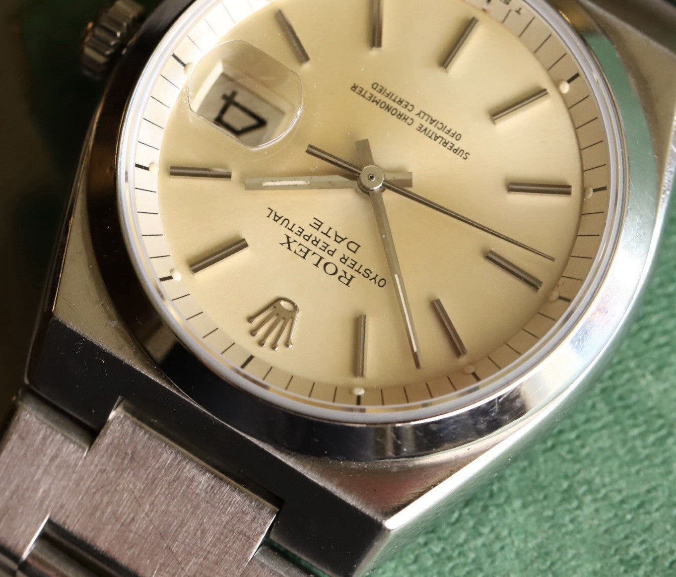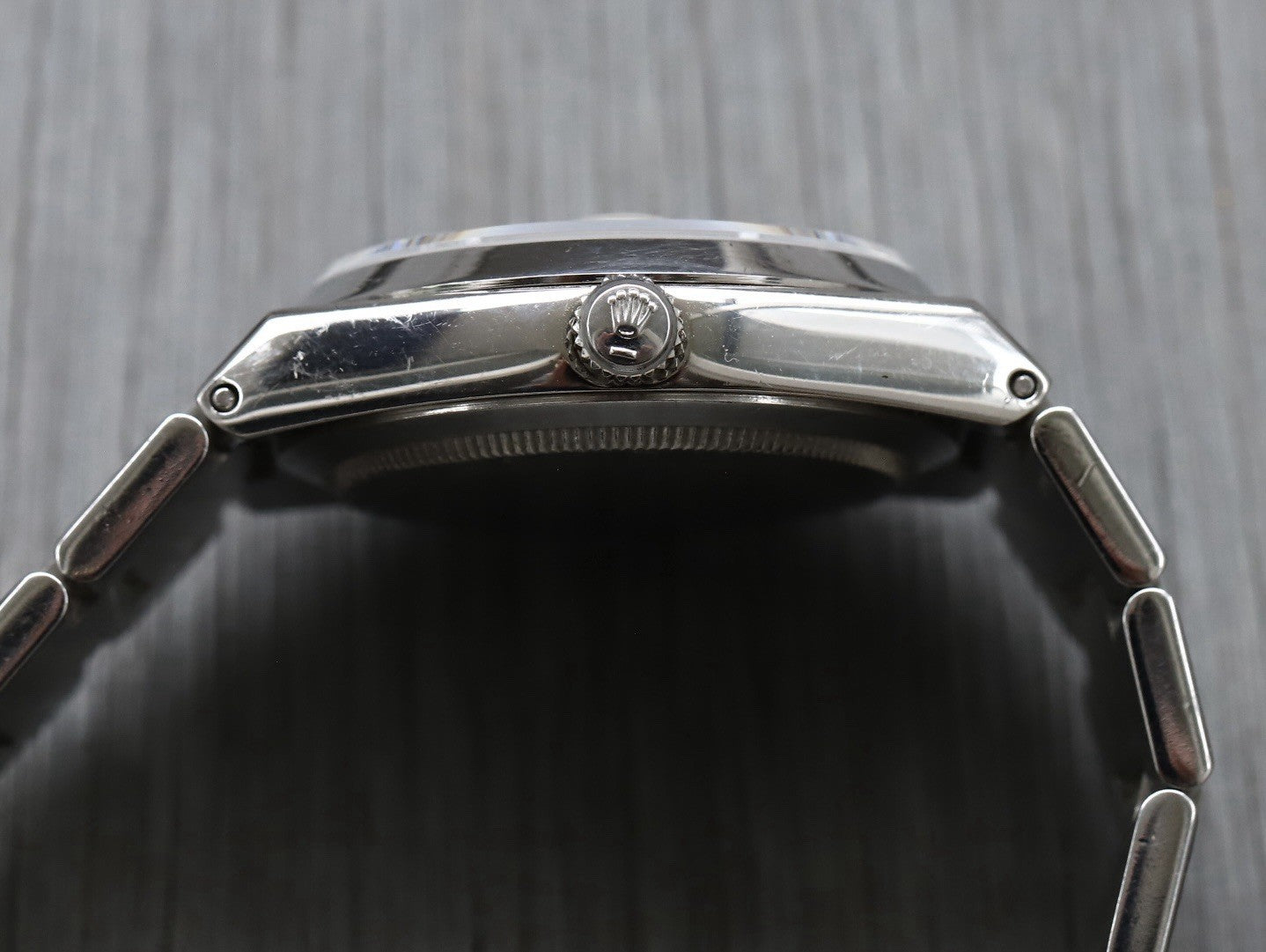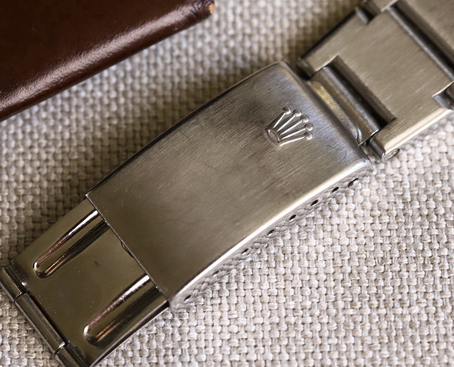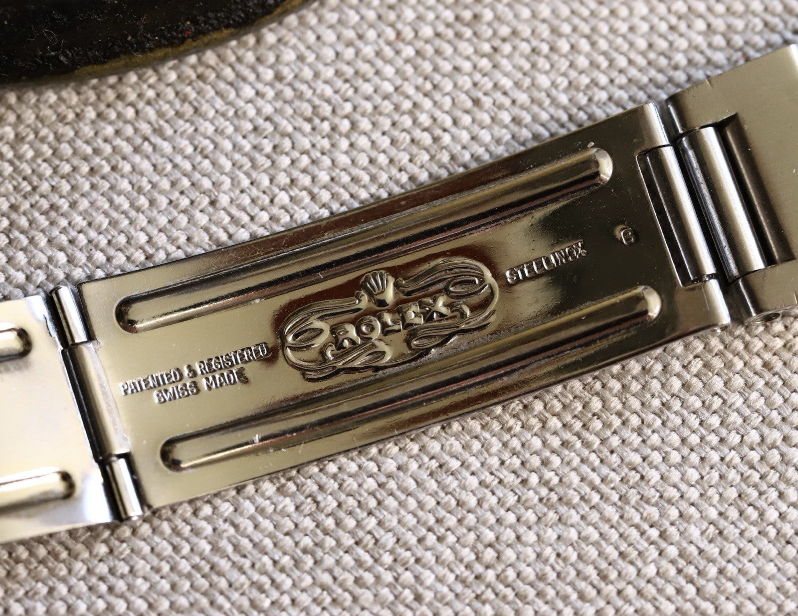 Bracelet is a Rolex 17000 with a B code on the clasp dating it to 1977. Very tight condition, and will fit roughly a 7.5in wrist or less.