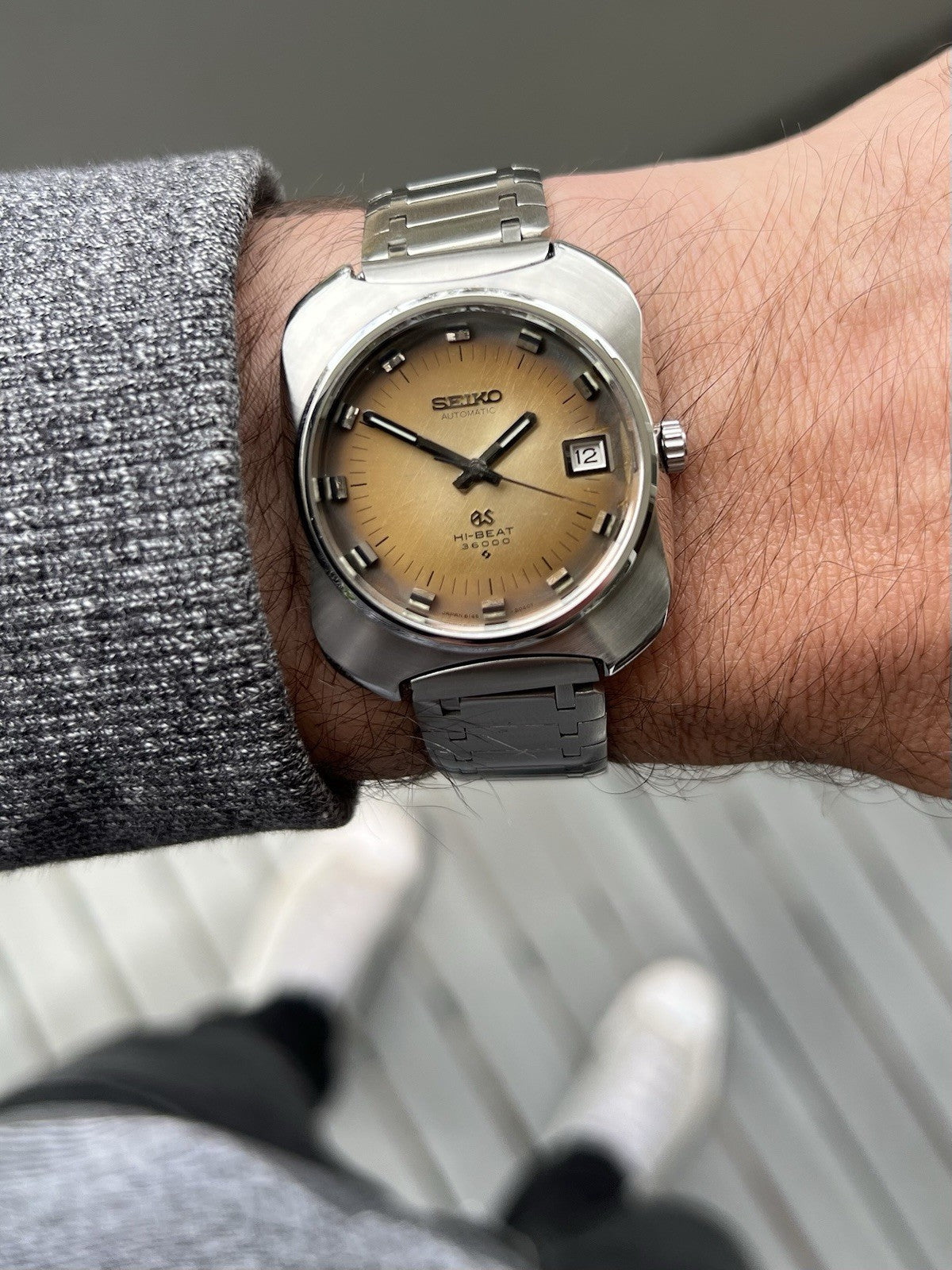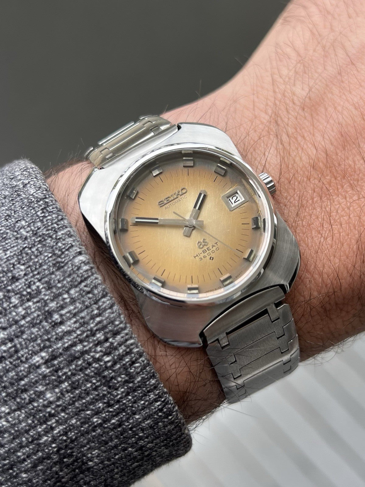 It comes mounted to a vintage Grand Seiko bracelet which really does complete the look on these. Endlinks are stamped 6146 and 802. It's in superb condition, very tight, and will fit up to a 7.6in wrist.