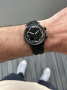 It comes mounted on a stunning pre-curved FKM rubber strap with DLC coated buckle that is supremely comfortable.