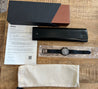 Paraphernalia: Outer box, inner case, inner fabric pouch, and warranty papers