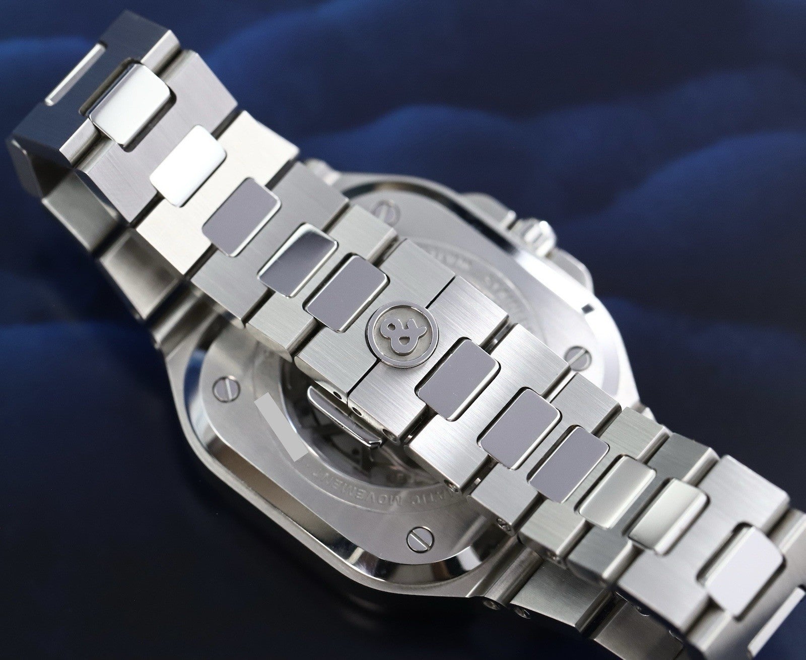 It's powered by a high-grade Sellita SW300 for easy serviceability and reliability. Finishing it off is a superb integrated bracelet in steel, also made by Châtelain, which drapes beautifully around the wrist, and allows you to test out it's 100m of water resistance. This particular example also includes an aftermarket rubber strap in brown which is a great option to mix the look up.