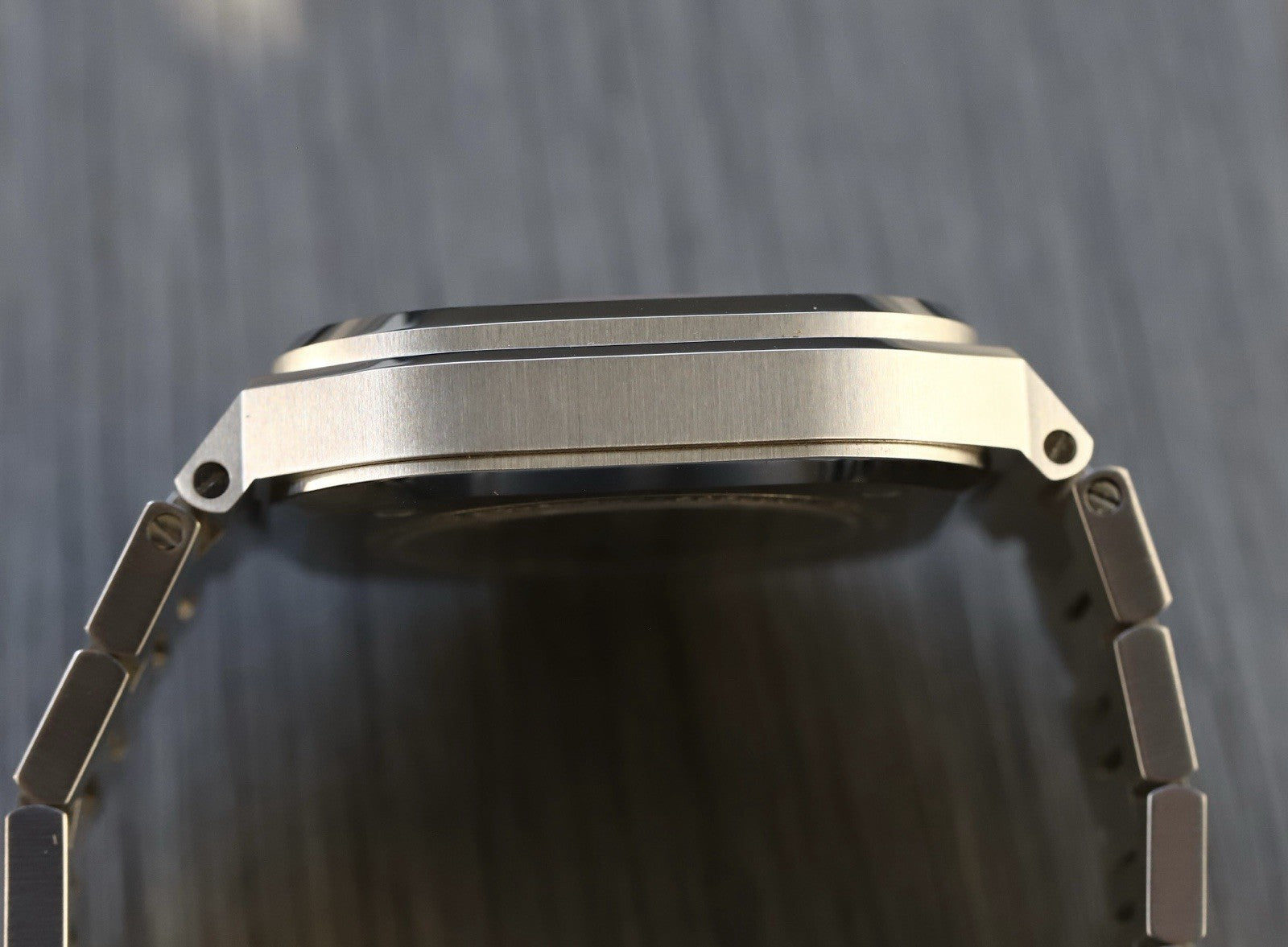 Featuring a 40mm case in steel, it measures just 10.8mm thick and 47.6mm lug-to-lug, and is made by renowned case maker G&F Châtelain. Within this case lies a beautiful sunburst copper brown dial which is quite dynamic, going from a deep brown to almost orange in direct sunlight. It's topped with with applied lumed indices, and heavily lumed hands.