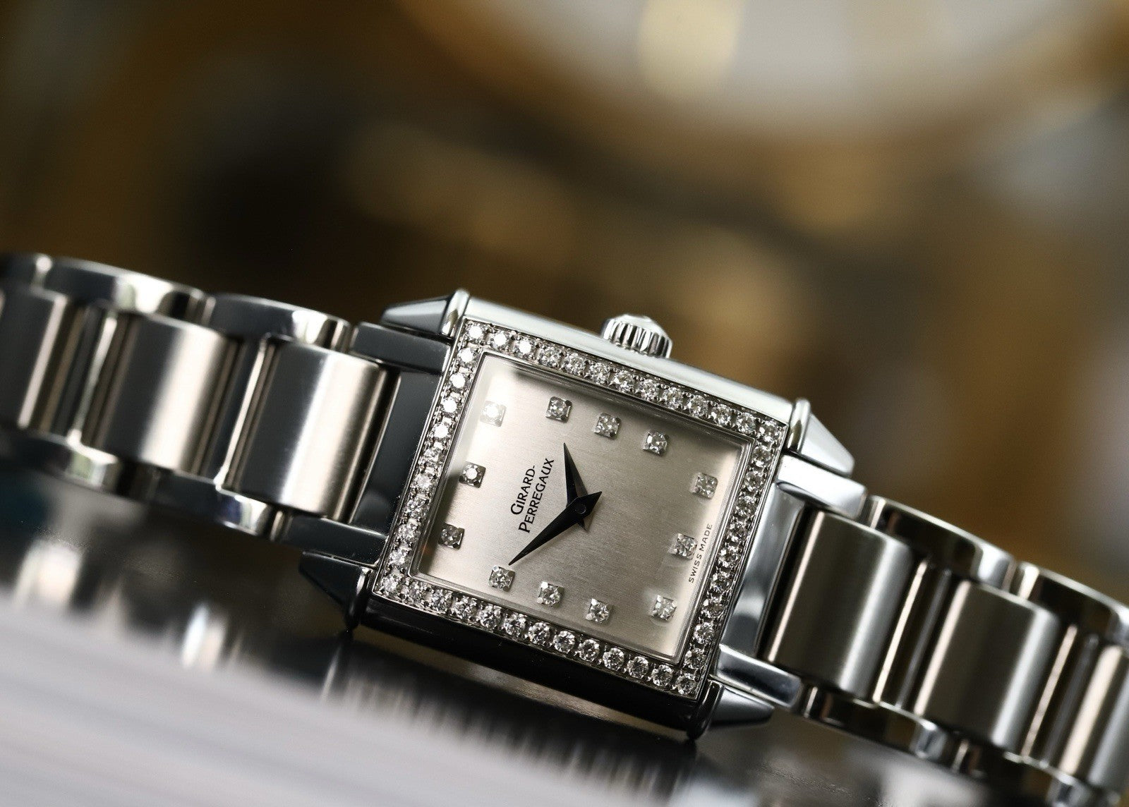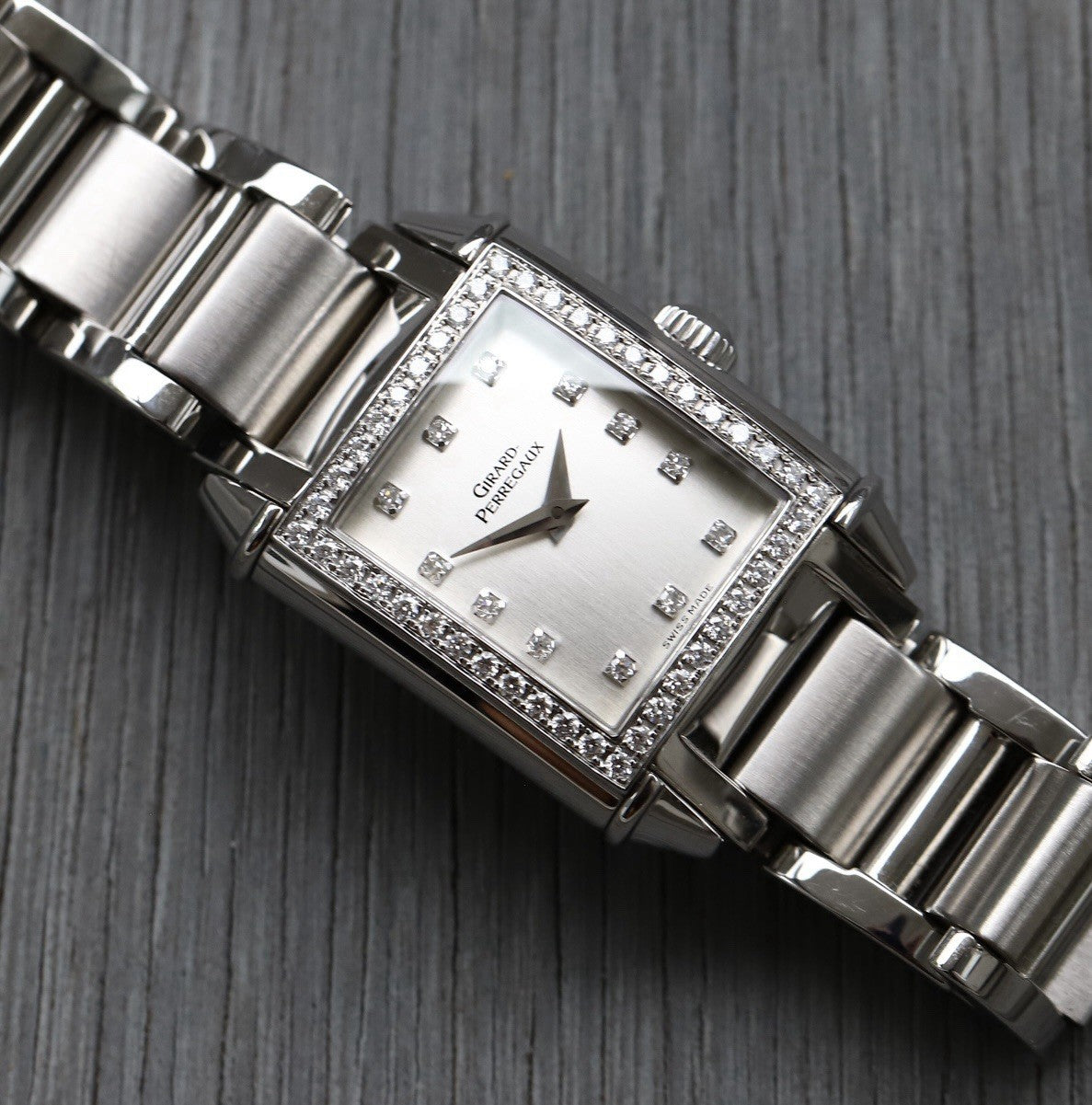 A lovely ladies watch from Girard Perregaux, the 25890 reference sits within the Vintage 1945 range, a tribute to Art Deco design with it's rectangular case and elegant curves.