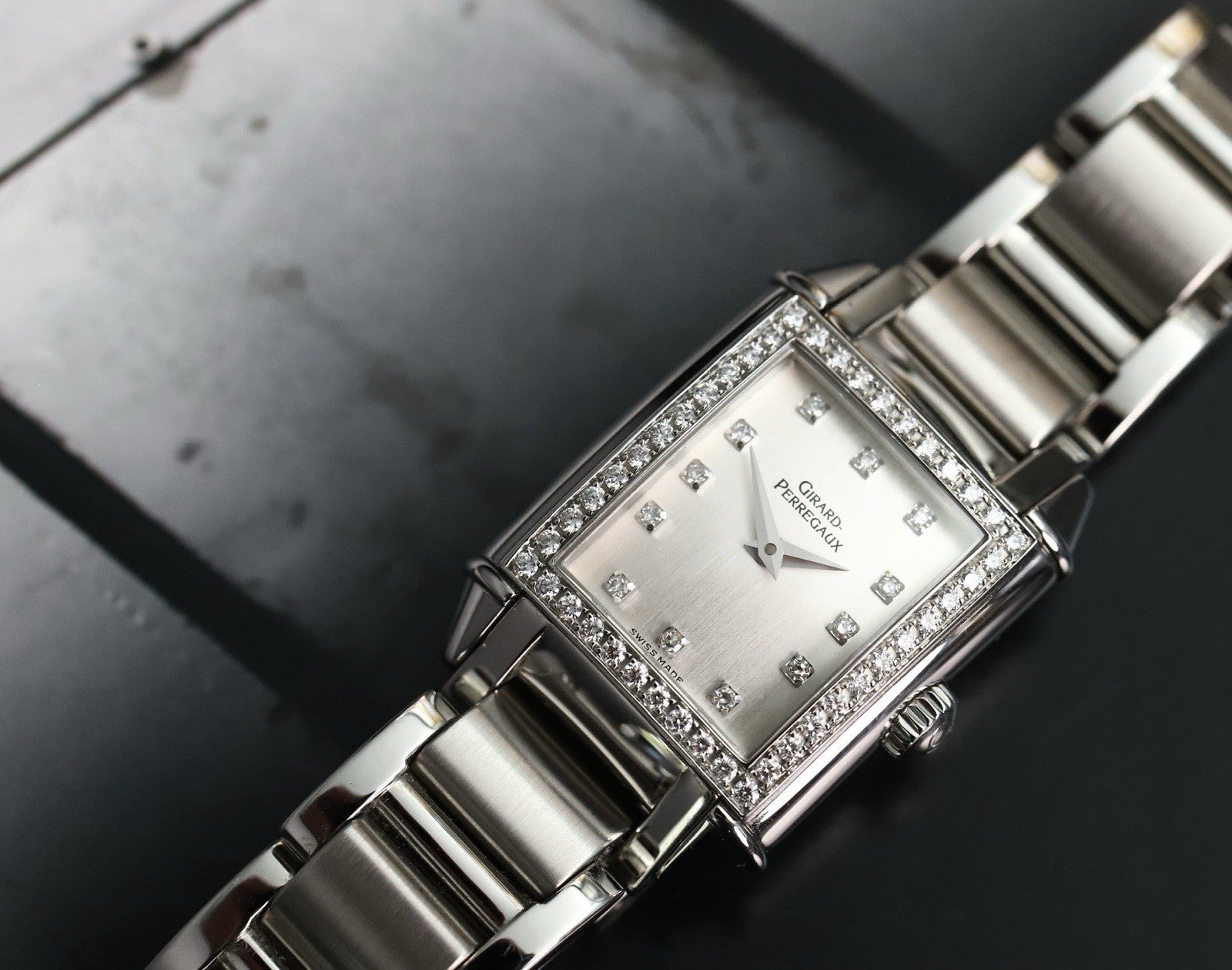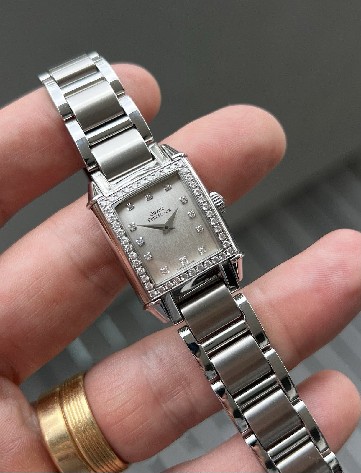 Most watches of this ilk are powered by quartz movements for their ladies references, but kudos to GP for fitting this with a manual wind calibre 2049 movement. This is a serious watch, not just a fashion accessory.