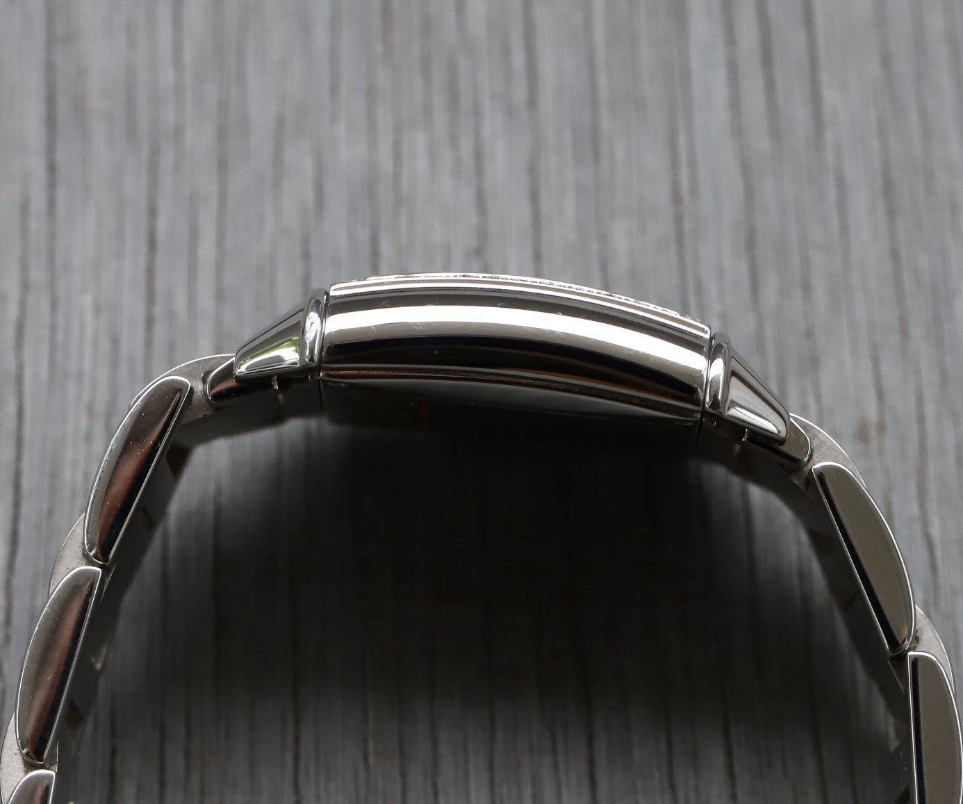 The 25890D in this spec is our pick of the ladies references, with a 23mm rectangular case which curves around the wrist, and it's elegant factory diamond set bezel. This bezel is matched to a diamond-set dial, which sits atop a brushed silvered base and completed with lovely dauphine hands.