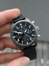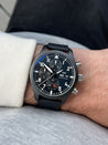 This version of the Top Gun was released in 2023, and in our opinion is perhaps the best wearing versions of the chronograph to date with it's reduced case size of 41.9mm, and a case height of 15.5mm, making for a great combination of the presence you'd expect from an IWC Chronograph, but also fantastically comfortable on the wrist. This is definitely the sweet spot of the Top Gun Chrono range over the last decade.