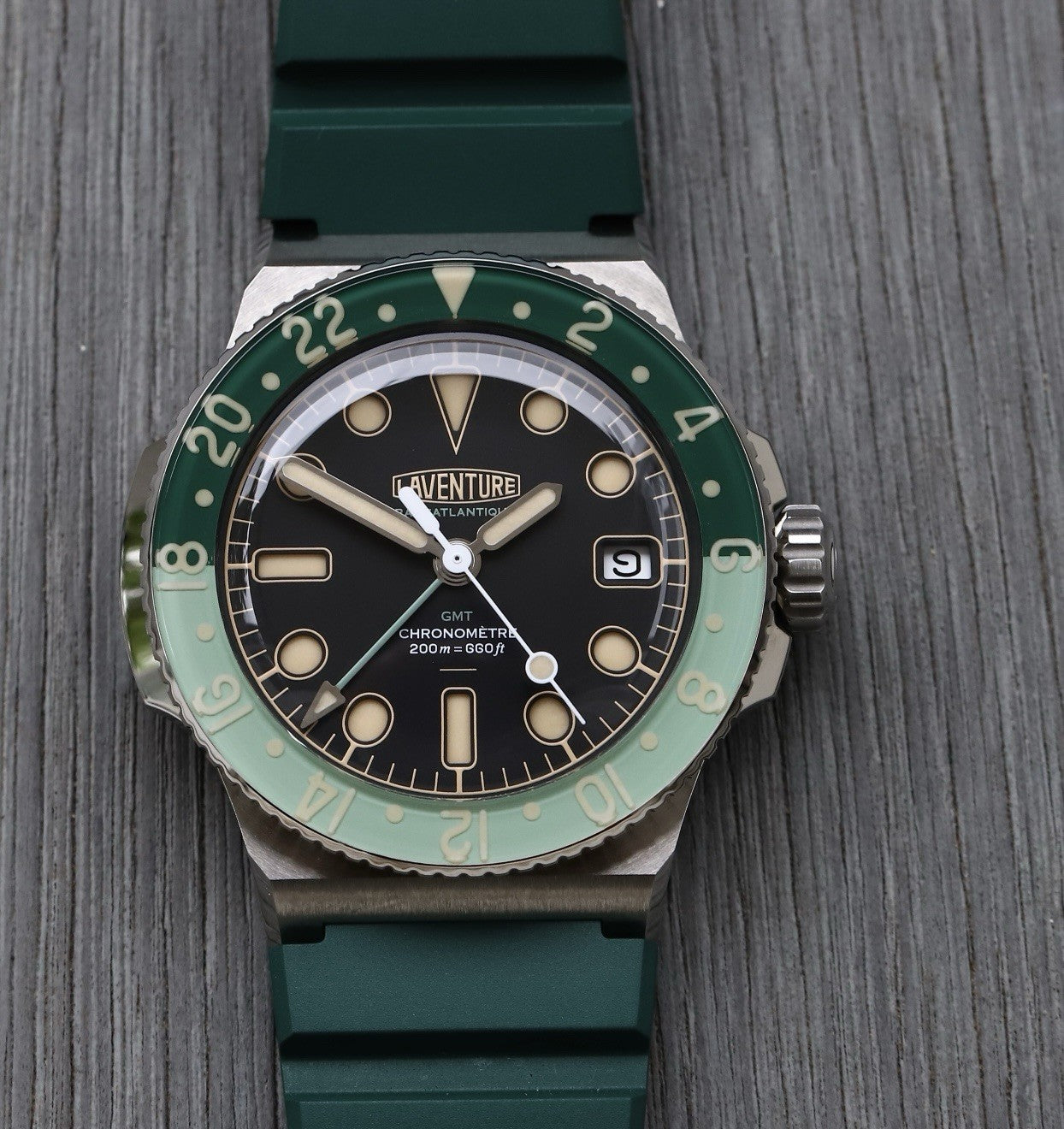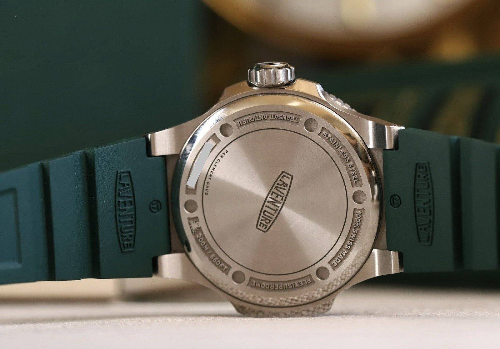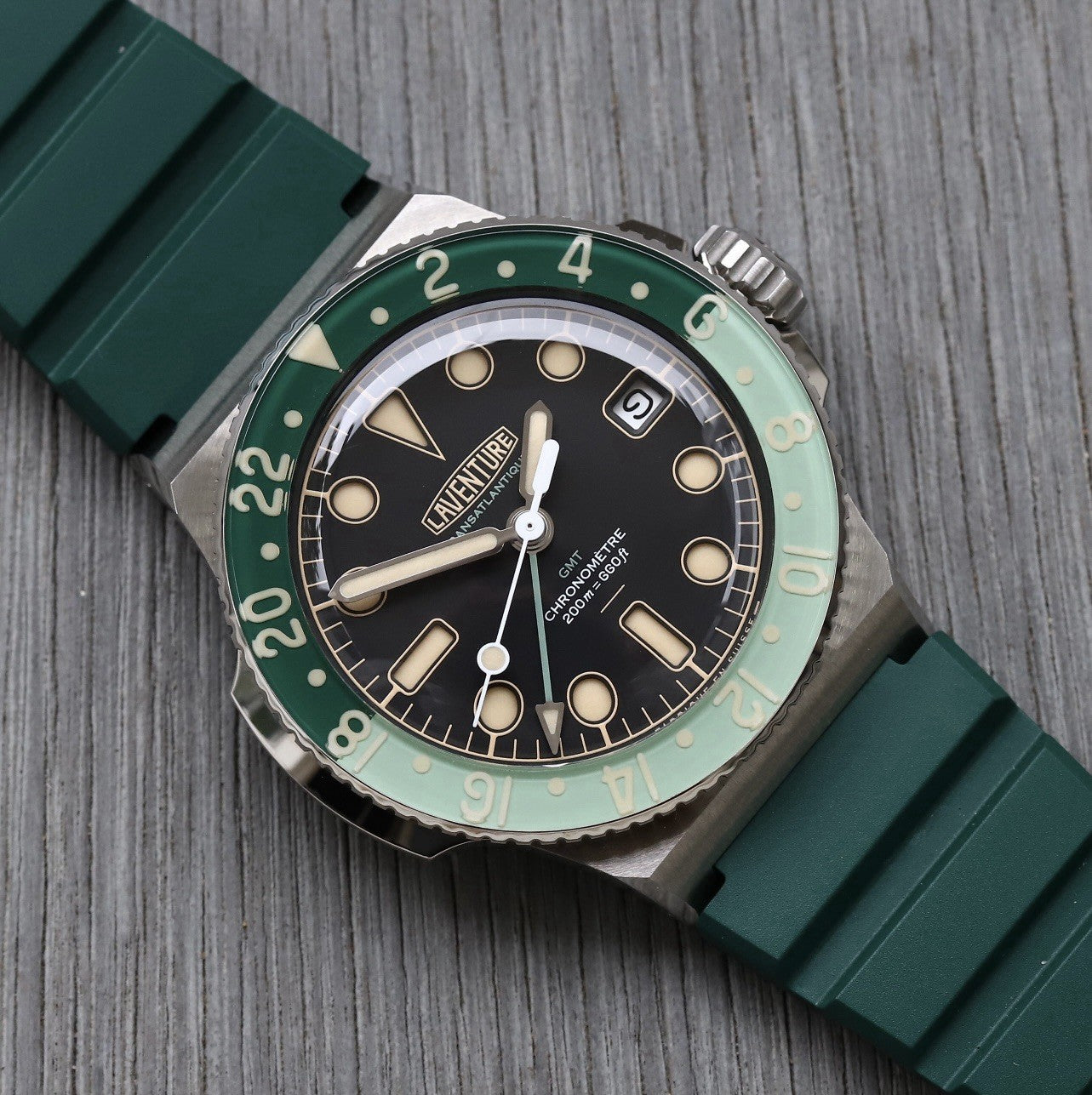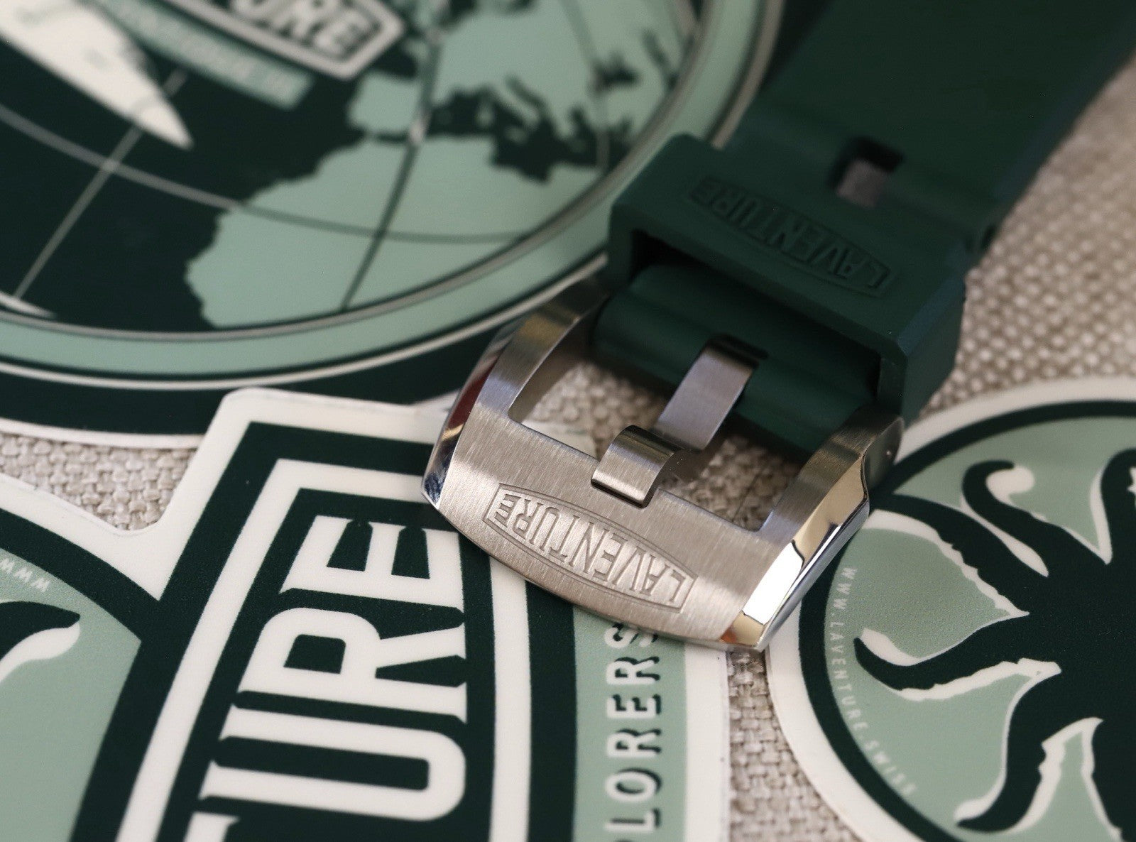 Powering it is the Caliber 3 automatic movement, which is produced for Laventure and based on the SW330-2, and is COSC-certified. Finishing it off is Laventure's superb strap in green rubber.