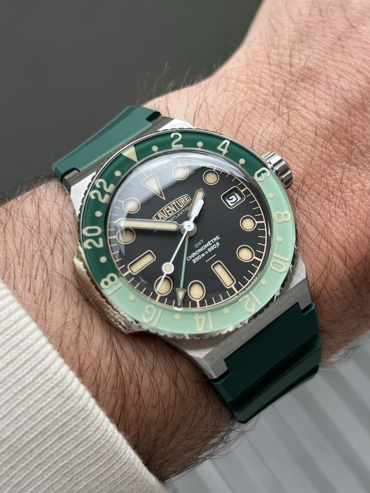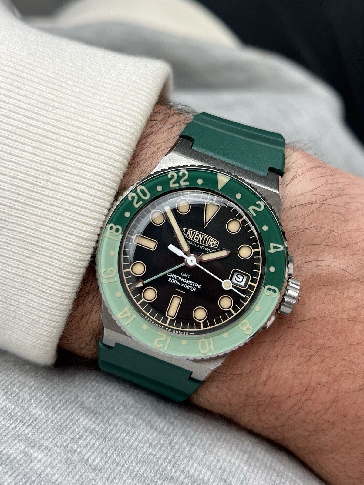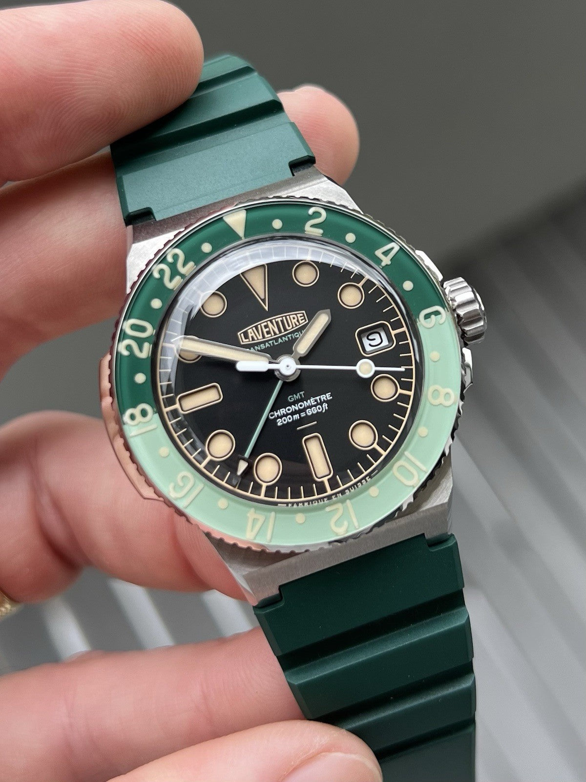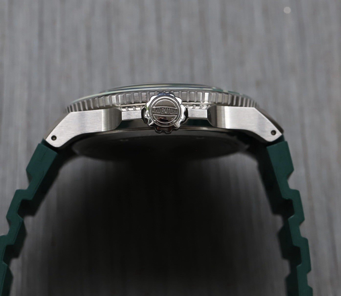 Powering it is the Caliber 3 automatic movement, which is produced for Laventure and based on the SW330-2, and is COSC-certified. Finishing it off is Laventure's superb strap in green rubber.