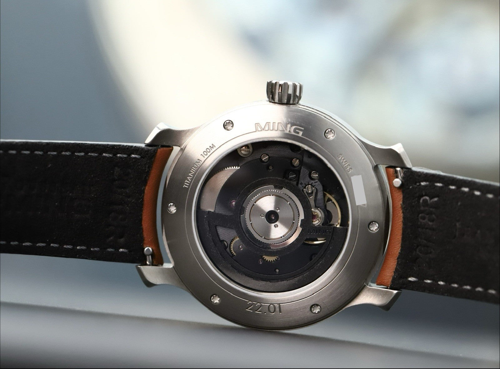 It’s powered by the automatic-winding Cal. 330.M2 based on the Sellita SW330-2, with a black circular grained finish with a skeletonized rotor, and an independently adjusted GMT hand.