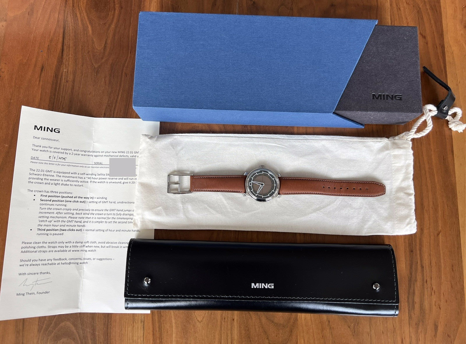 Paraphernalia: Outer box, inner pouch, leather case, warranty paperwork (expired)