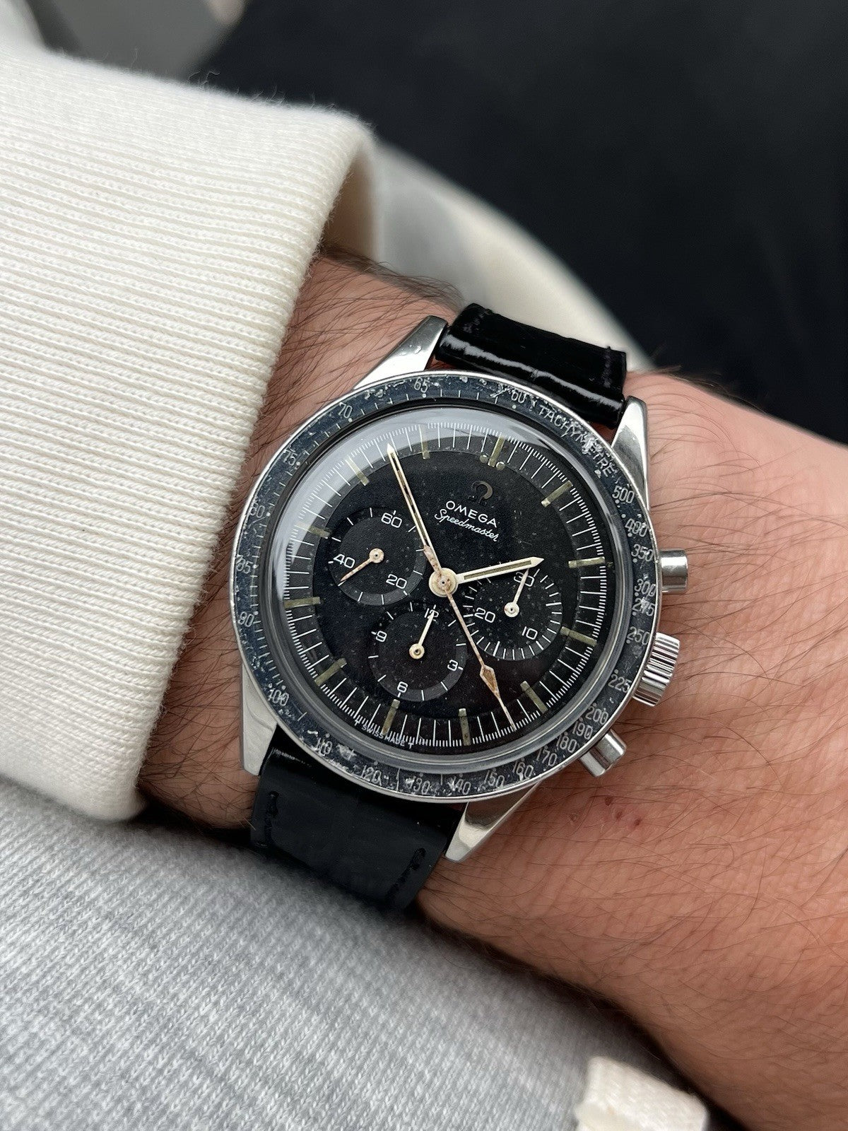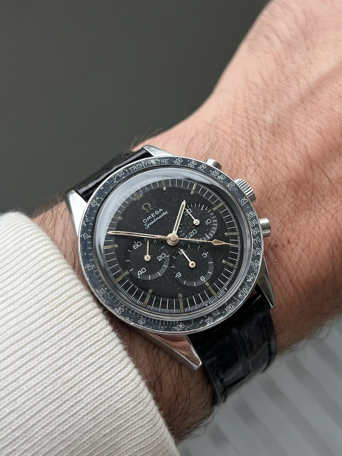 Not only is the history of this reference very cool, but so is the watch itself. It used the early 'straight lug' 39mm case, so no twist in it like the later lyre lugs. It also featured no crown guards, the famous 'dot-over-ninety (DON)' bezel, and was the first Speedmaster to feature the baton-style hands we still see today. Oh, and it also happened to be powered by the iconic 321 manual wind movement. It's no wonder this is one of the most coveted vintage Speedmasters.