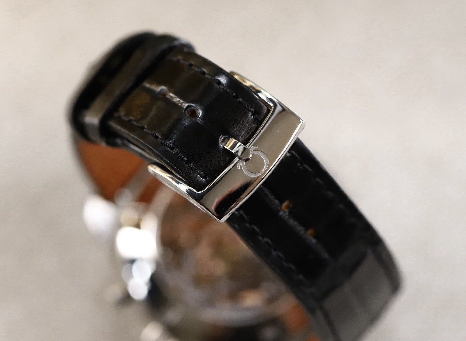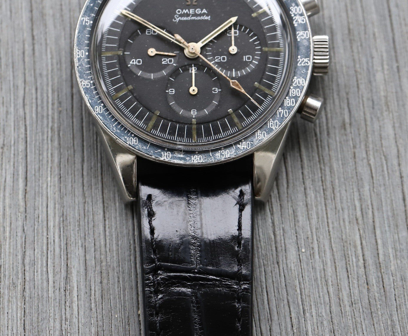 Comes mounted to a Vinacreations 'gator strap on Omega pin buckle. No original bracelet.