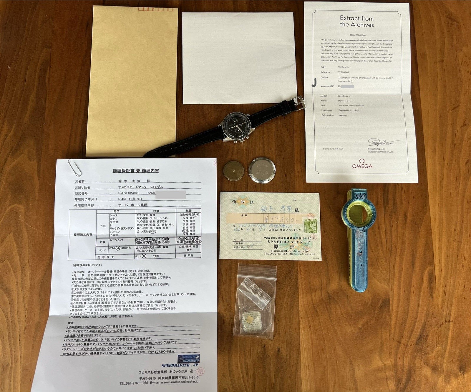 Was recently serviced by Tokyo-based Speedmaster specialist Speedmaster.jp. Currently keeping time COSC time at 300+ degrees of amplitude, with all functions operating as they should.