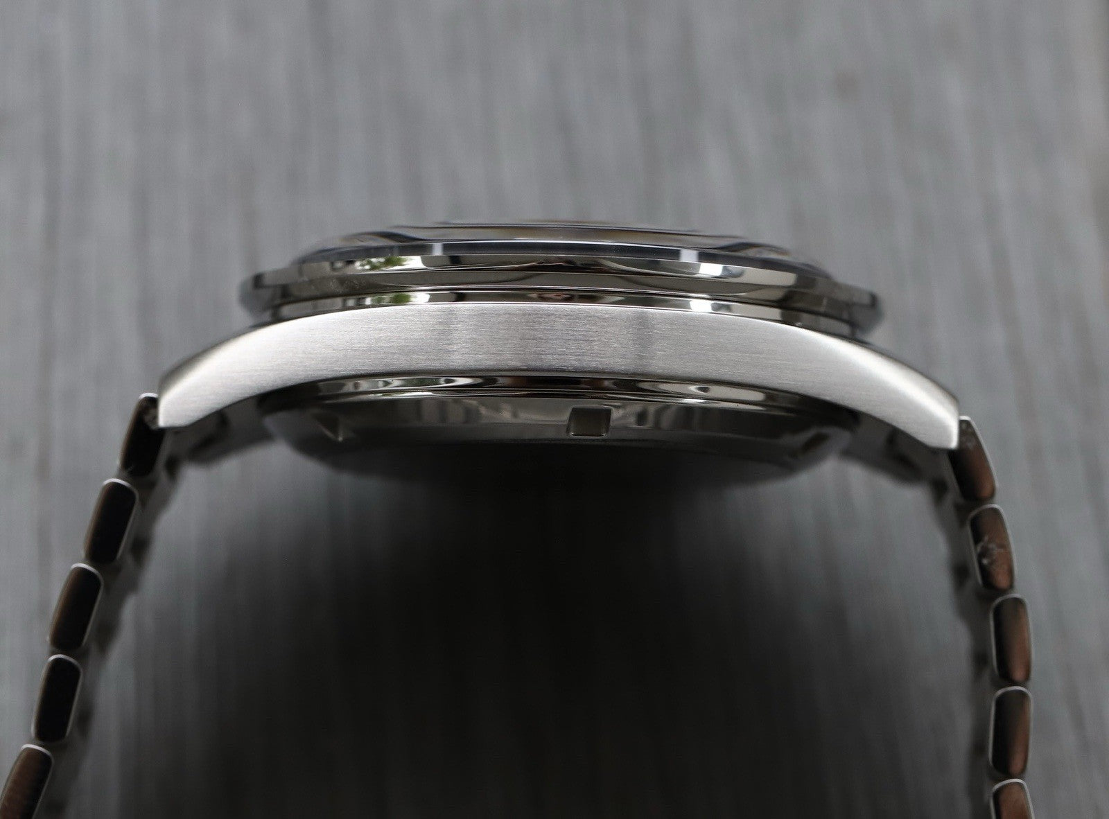 In 2024 Omega brought the FOIS back with this reference, and they really hit it out of the park. It utilises the same case as before, with it's Dot-over-Ninety (DoN) bezel intact. The step dial is also still there, though now executed in a marvelous blue-grey soleil with vintage-inspired deep ecru markers, harking back to the rarely seen early references with a similar dial finish. The Alpha hands are also present and correct, with vintage-inspired lume, and it's all covered by a sapphire crystal made to evoke the high-hat hesalite of the early references.