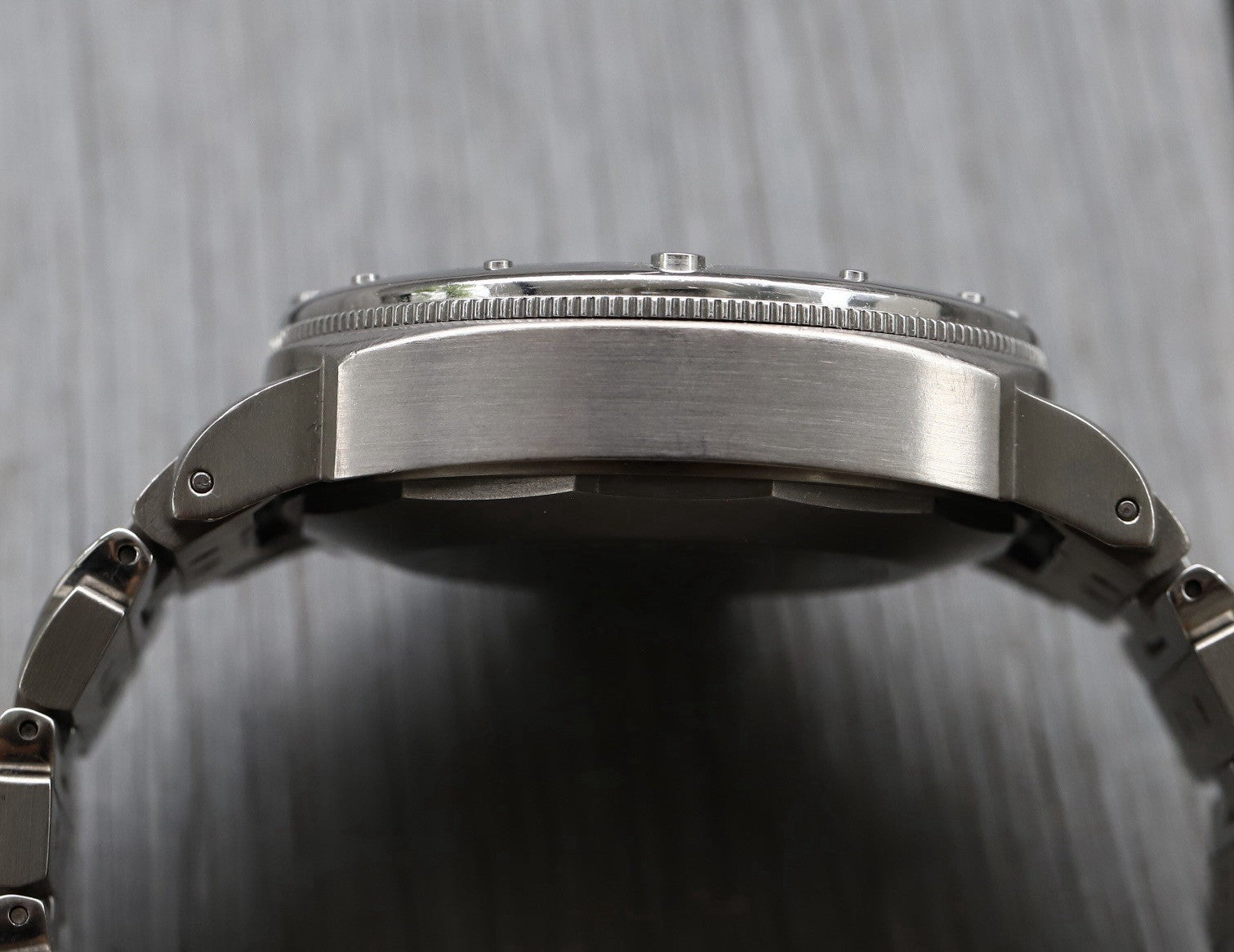 This particular example was first sold in 2008, though would have been produced in 03/04, and presents in excellent neo-vintage condition. The watch has been worn regularly, and shows wear commensurate with that use. The bezels shows scuffs and scratches throughout, and the case shows minor scratching. No large dings/nicks etc. The hands are lighter in shade than the dial, which is correct for this reference, and matches the pip in the bezel. All glow under UV, and remains glowing for a few minutes.