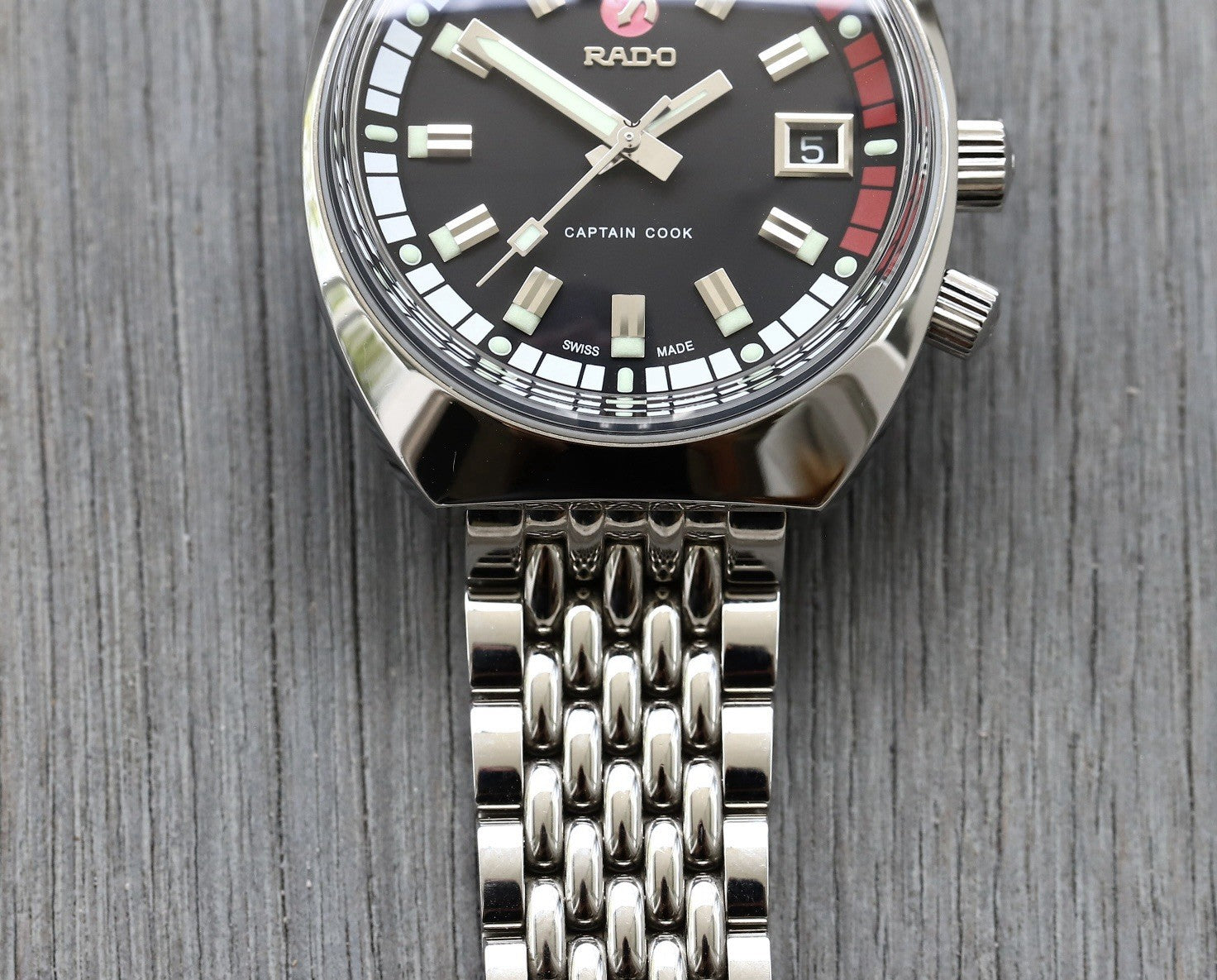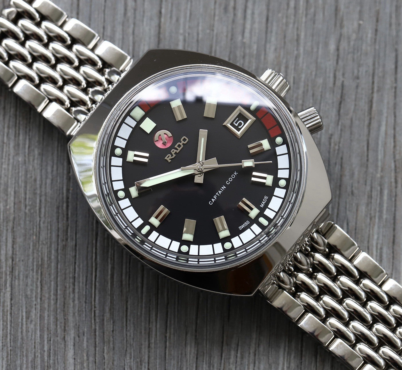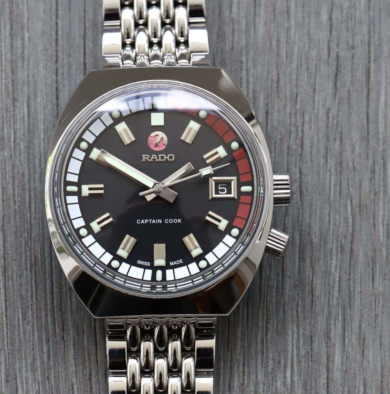 Released in 2019 as a limited run of 1962 pieces, the Captain Cook MKII from Rado was a follow up to the immensely popular MKI re-issue of 2017. This original re-issue was a very faithful rendition of the first diver from Rado dating back to 1962, and the MKII version pays homage to the second generation which as you can see, started to gain some flair with its distinctive 60's/70's design aesthetic with the use of hooded lugs, curvaceous case, and inner rotating bezel.