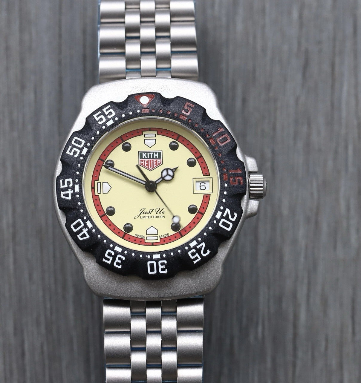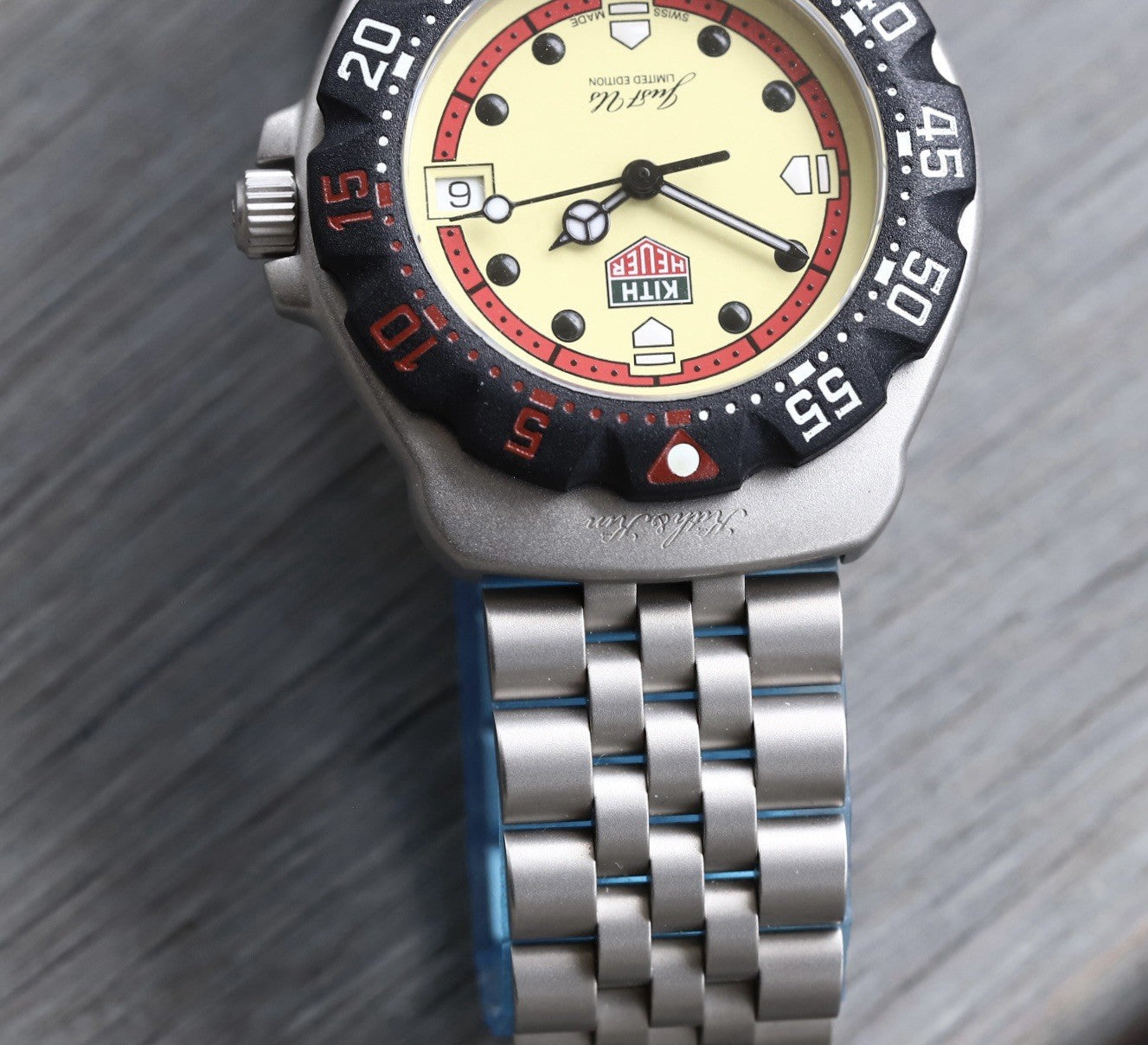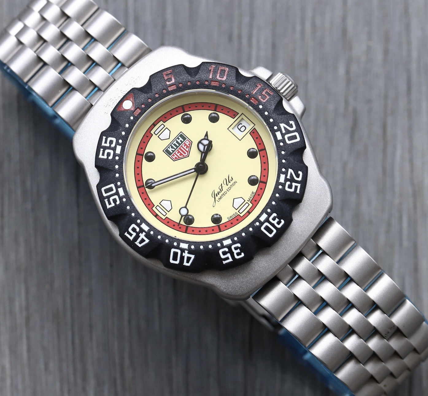 Enjoying a resurgence of interest as of late, TAG Formula 1 Quartz Chrono's have officially re-entered the realm of all that is 90's cool, and this is the watch that kicked it off. Designed in collaboration with KITH,
