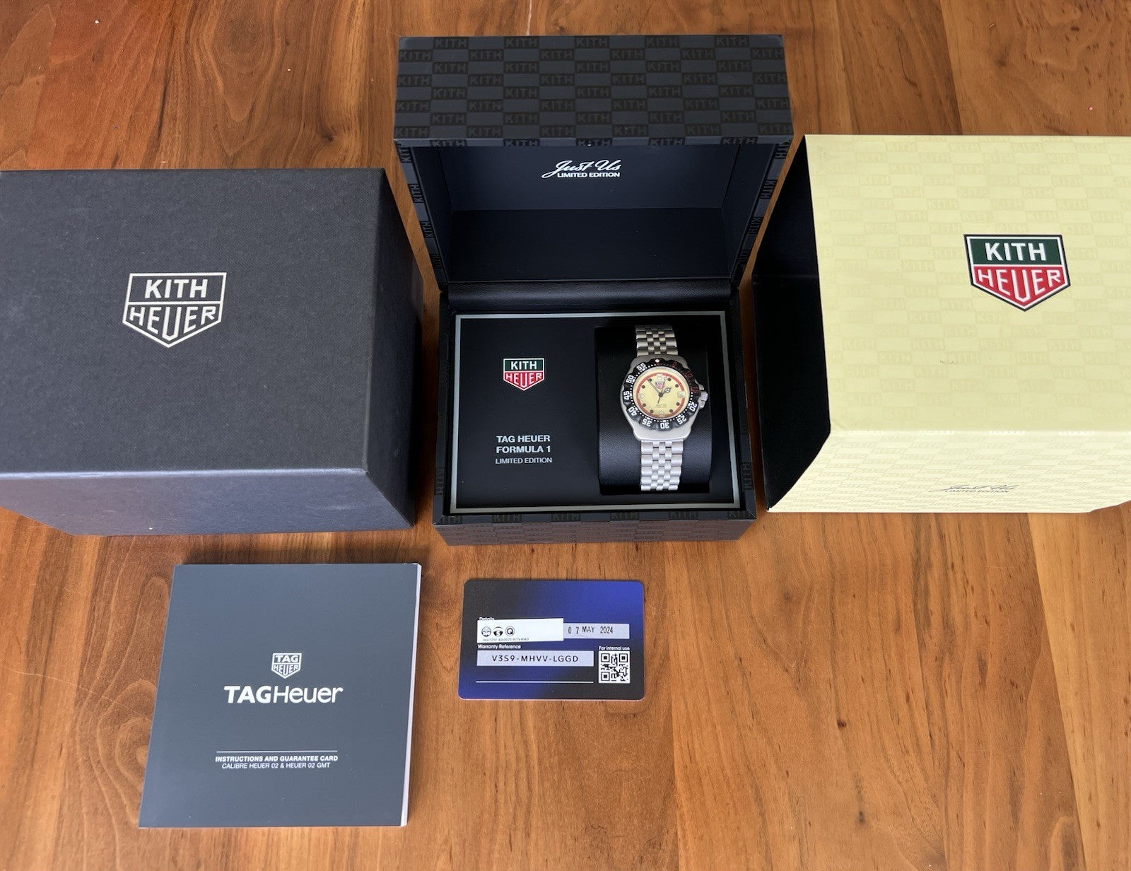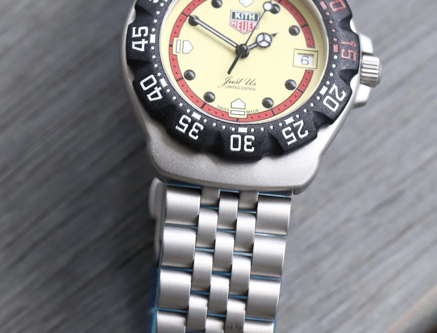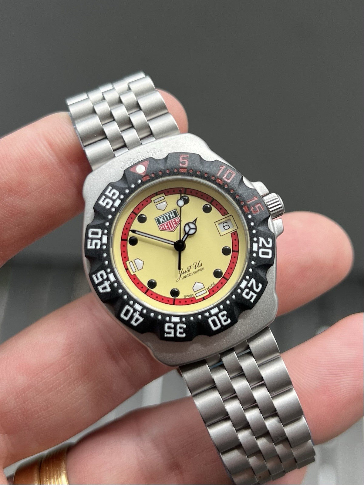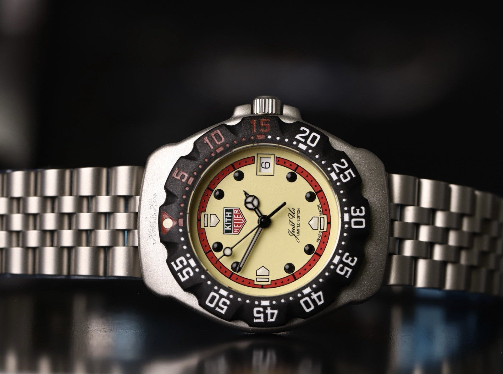 Enjoying a resurgence of interest as of late, TAG Formula 1 Quartz Chrono's have officially re-entered the realm of all that is 90's cool, and this is the watch that kicked it off. Designed in collaboration with KITH,